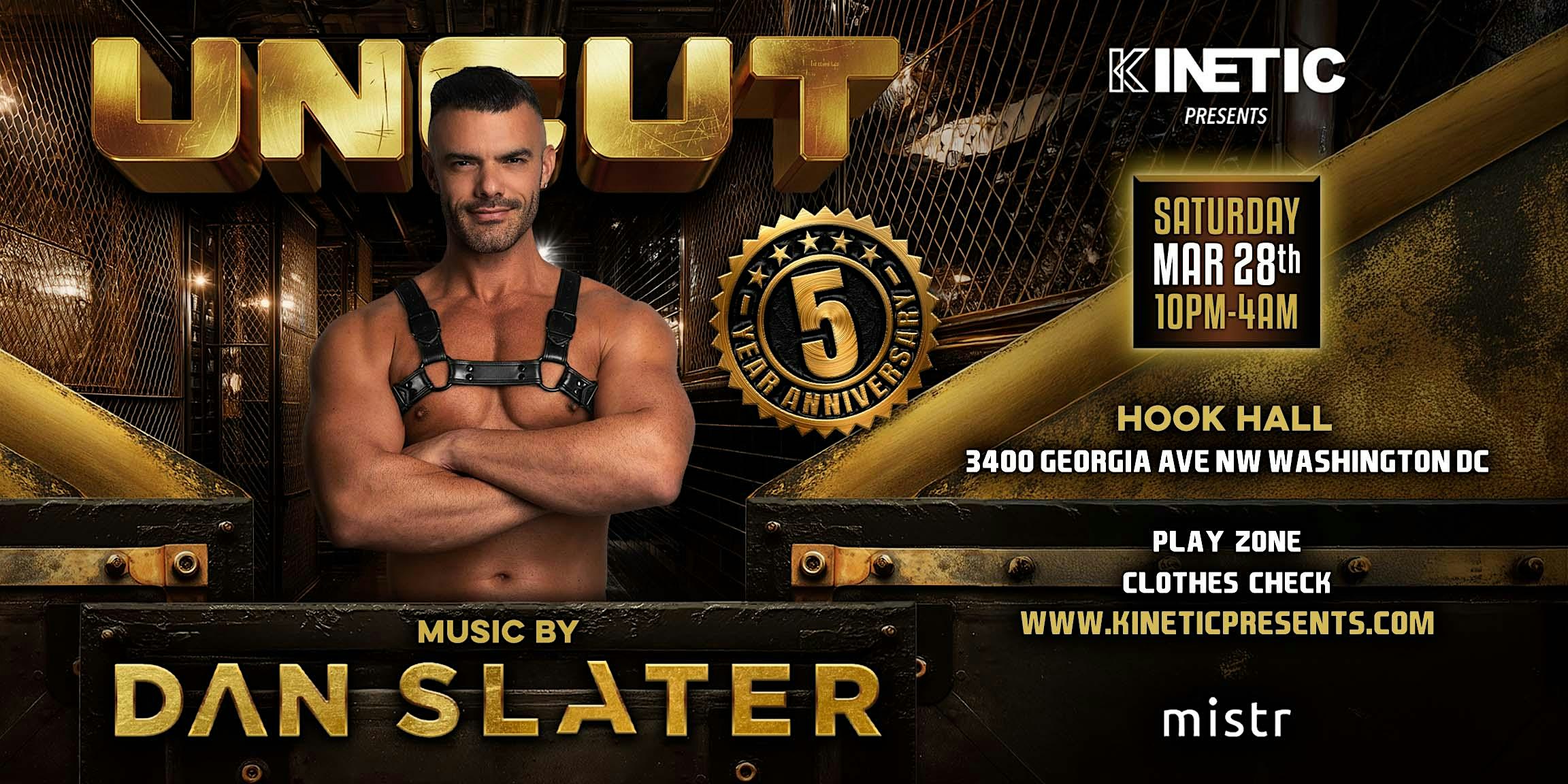 by admin27Feb UNCUT: 5 Year Anniversary with DJ Dan Slater at Hook Hall – Washington, DC UNCUT: 5 Year Anniversary with DJ Dan Slater at Hook Hall – Washington, DC 1 1 people viewed this event. UNCUT celebrates half a decade as DC’s most risqué night with a legendary performance to match the milestone. Tickets-RSVP Link Date And Time Saturday, March 28th, 2026 @ 10:00 PM Location 3400 Georgia Avenue Northwest, Washington, DC 20010 Event Types MusicParty or Social Gathering Event Category Washington DC Share With Friends Facebook Twitter Linkedin Xing Pinterest Share This Post: