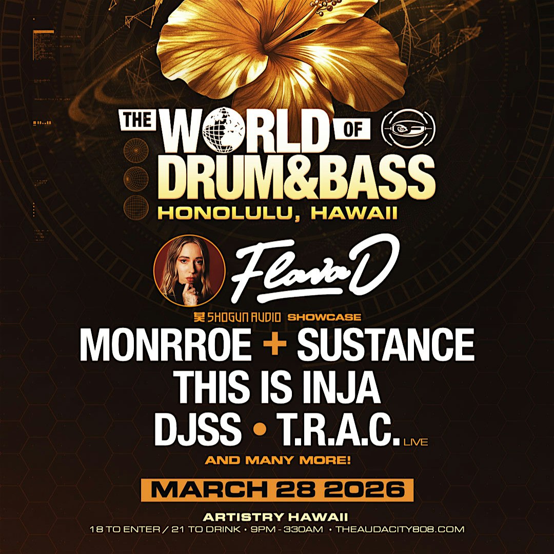 by admin24Feb World Of Drum and Bass Hawaii at Artistry Honolulu – Honolulu, HI World Of Drum and Bass Hawaii at Artistry Honolulu – Honolulu, HI 4 4 people viewed this event. Get ready to vibe with the sickest Drum and Bass beats in paradise at World Of Drum and Bass Hawaii! Tickets-RSVP Link Date And Time Saturday, March 28th, 2026 09:00 PM (PST) Venue Artistry Honolulu Location 461 Cooke Street, Honolulu, HI 96813 Event Types Concert or PerformanceMusic Event Category HawaiiHonolulu Share With Friends Facebook Twitter Linkedin Xing Pinterest Share This Post: