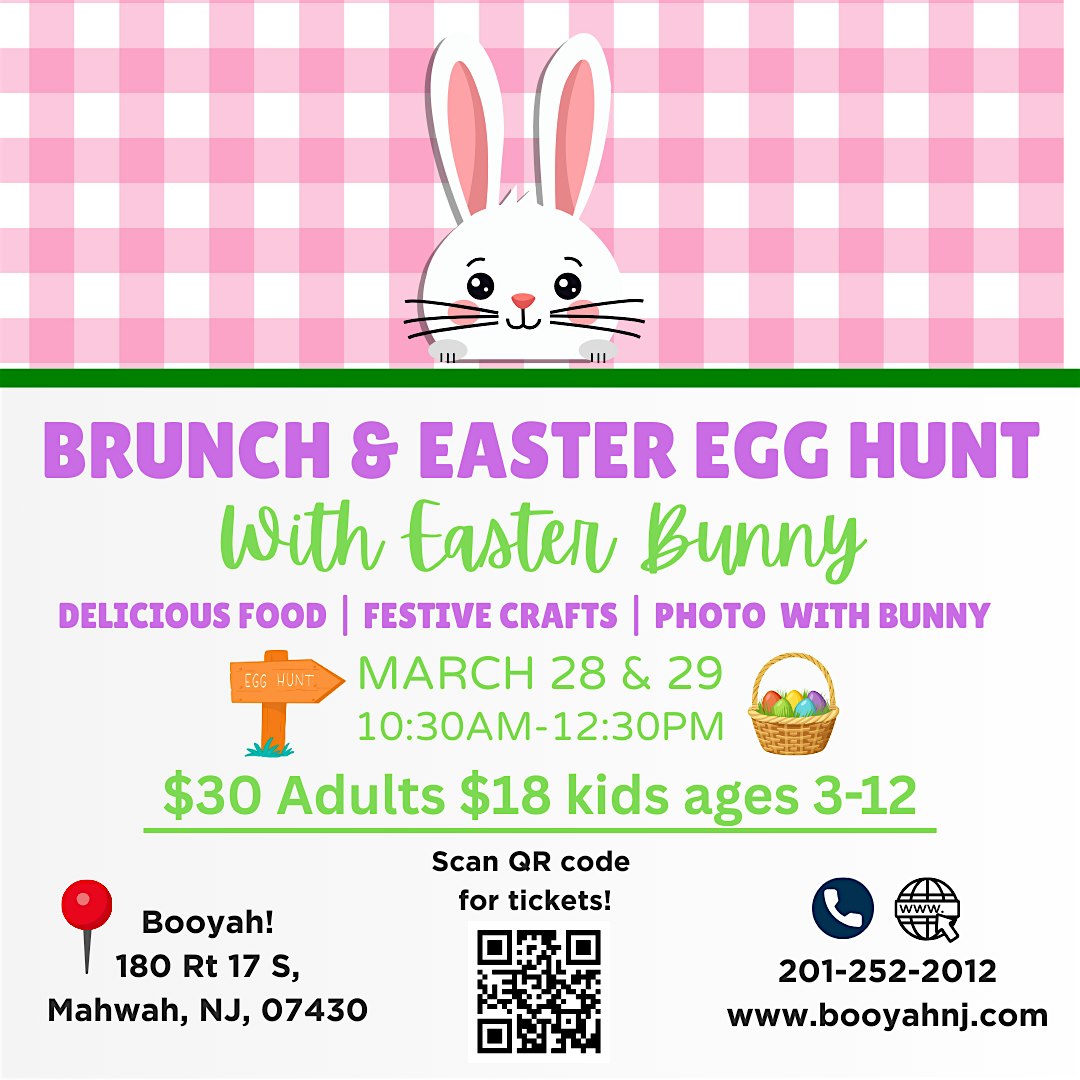 by admin27Feb Brunch & Easter Egg Hunt! at Booyah! – Mahwah, NJ Brunch & Easter Egg Hunt! at Booyah! – Mahwah, NJ 2 2 people viewed this event. Join us for a fun-filled Brunch & Easter Egg Hunt – great food, great vibes, and egg-citing prizes! Tickets-RSVP Link Date And Time Sunday, March 29th, 2026 @ 10:00 AM Location 180 New Jersey 17, Mahwah, NJ 7430 Event Types Party or Social GatheringSeasonal & Holiday Event Category New Jersey Share With Friends Facebook Twitter Linkedin Xing Pinterest Share This Post: