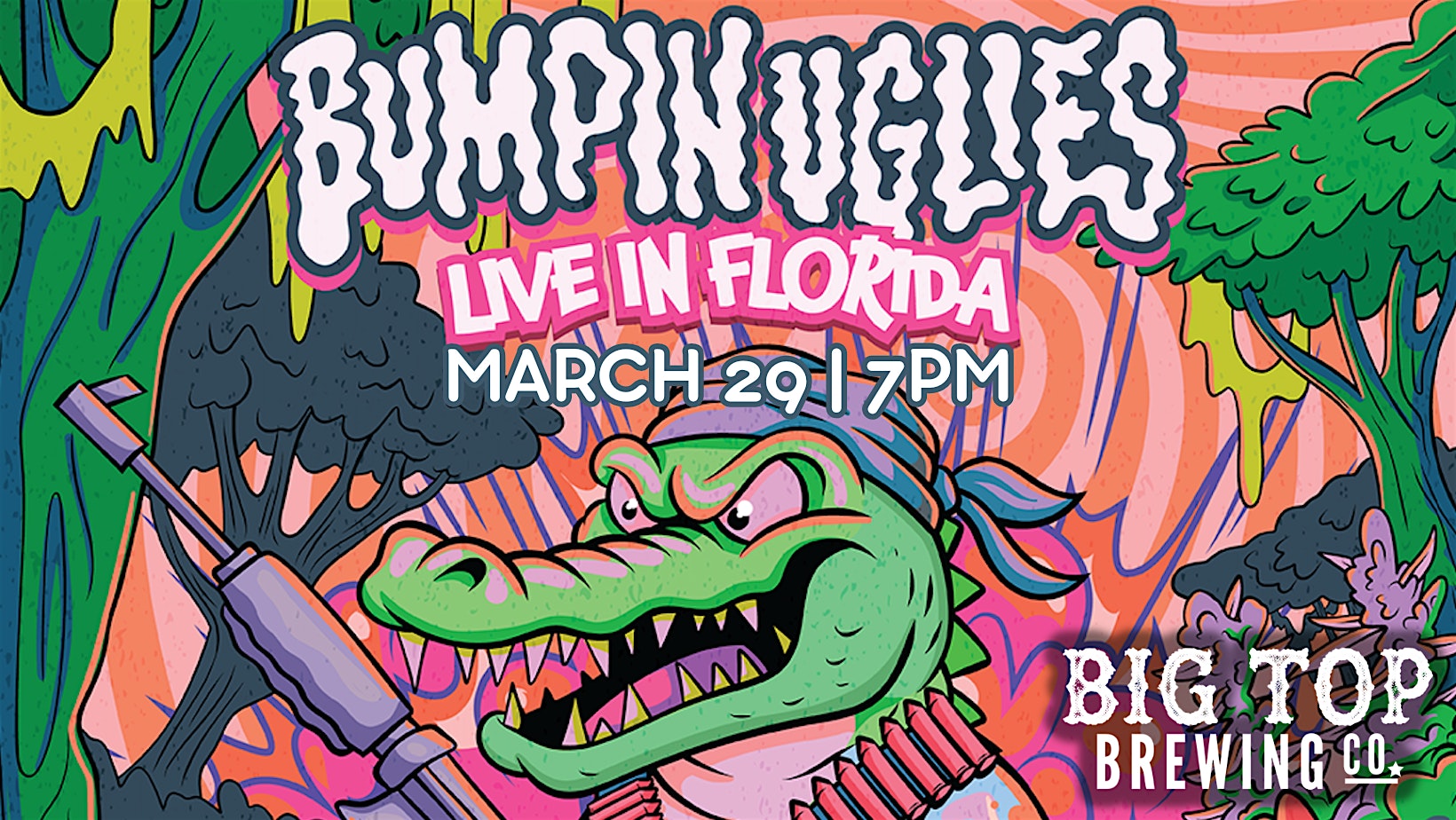 by admin13Feb Bumpin Uglies Live at Big Top Brewing Company (Fruitville Commons) – Sarasota, FL Bumpin Uglies Live at Big Top Brewing Company (Fruitville Commons) – Sarasota, FL 1 1 people viewed this event. Don’t miss the Bumpin Uglies Live in Florida Tour. Tickets-RSVP Link Date And Time Sunday, March 29th, 2026 10:00 PM (PST) Venue Big Top Brewing Company (Fruitville Commons) Location 3045 Fruitville Commons Boulevard, Sarasota, FL 34240 Event Types Concert or PerformanceMusic Event Category Florida Share With Friends Facebook Twitter Linkedin Xing Pinterest Share This Post: