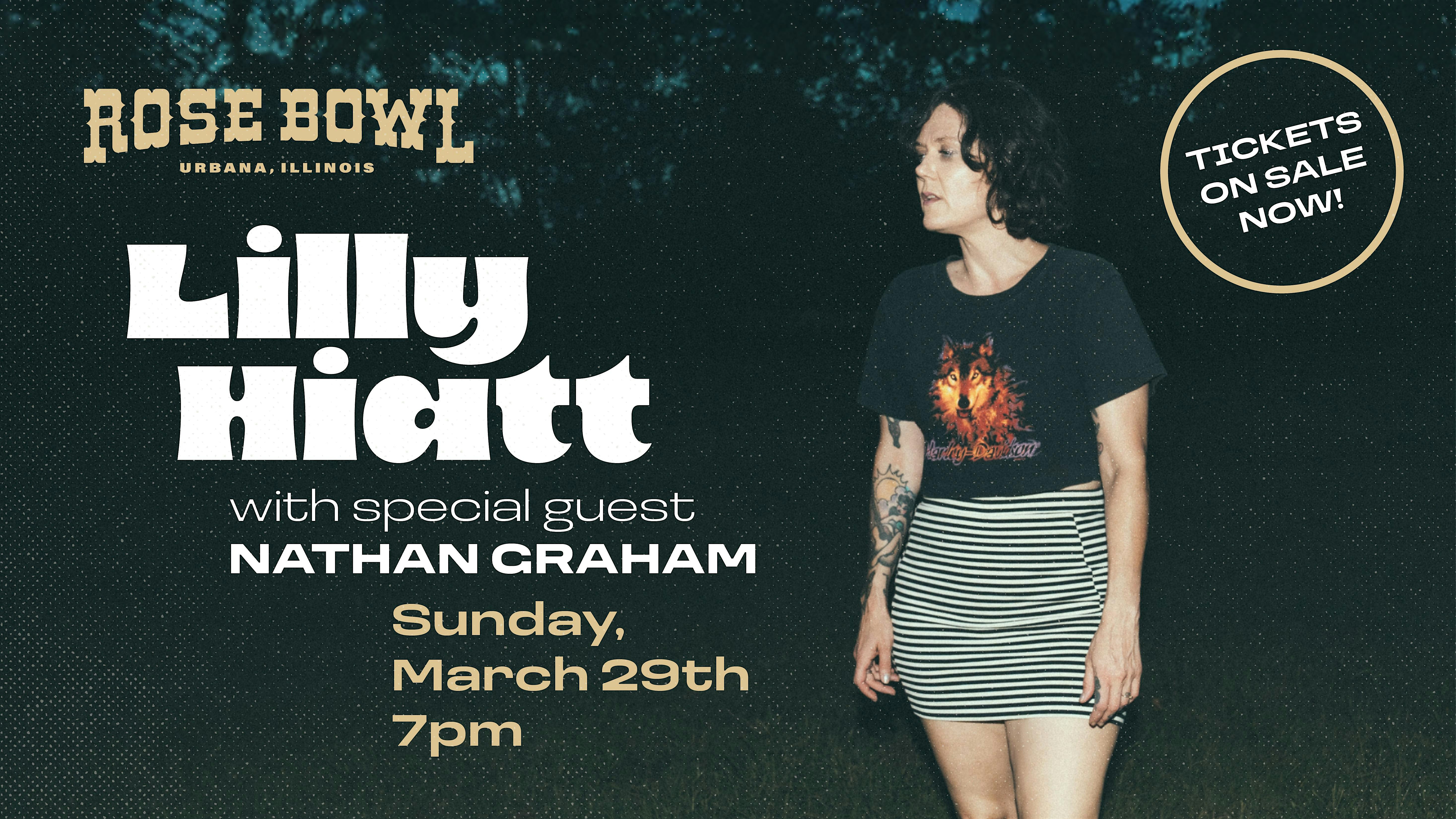 by admin24Feb Lilly Hiatt with special guest Nathan Graham at The Rose Bowl Tavern – Urbana, IL Lilly Hiatt with special guest Nathan Graham at The Rose Bowl Tavern – Urbana, IL 2 2 people viewed this event. Don’t miss Lilly Hiatt’s intimate debut at the historic Rose Bowl Tavern in downtown Urbana, IL on March 29th with guest, Nathan Graham. Tickets-RSVP Link Date And Time Sunday, March 29th, 2026 07:00 PM (PST) Venue The Rose Bowl Tavern Location 106 North Race Street, Urbana, IL 61801 Event Types Concert or PerformanceMusic Event Category Illinois Share With Friends Facebook Twitter Linkedin Xing Pinterest Share This Post: