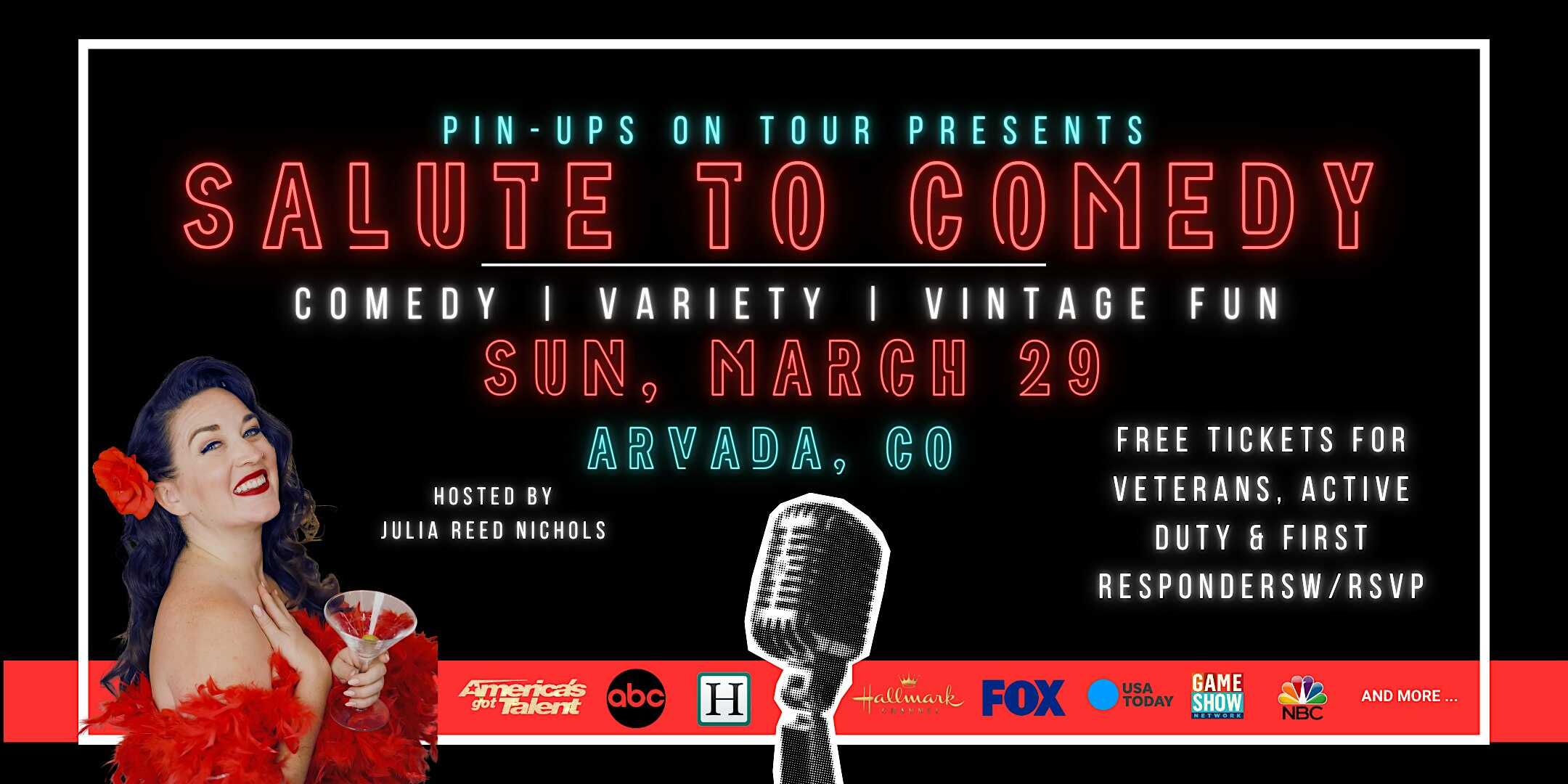 by admin14Feb Pin-Ups on Tour: Salute to Comedy (Arvada, CO) at Rockabillies Bar & Grill – Arvada, CO Pin-Ups on Tour: Salute to Comedy (Arvada, CO) at Rockabillies Bar & Grill – Arvada, CO 1 1 people viewed this event. Get ready to laugh your socks off at Pin-Ups on Tour: Salute to Comedy, where vintage charm meets hilarious comedy! Tickets-RSVP Link Date And Time Sunday, March 29th, 2026 11:00 PM (PST) Venue Rockabillies Bar & Grill Location 12363 W 64th Ave, Arvada, CO 80004 Event Types Concert or PerformancePerforming & Visual Arts Event Category ColoradoDenver Share With Friends Facebook Twitter Linkedin Xing Pinterest Share This Post: