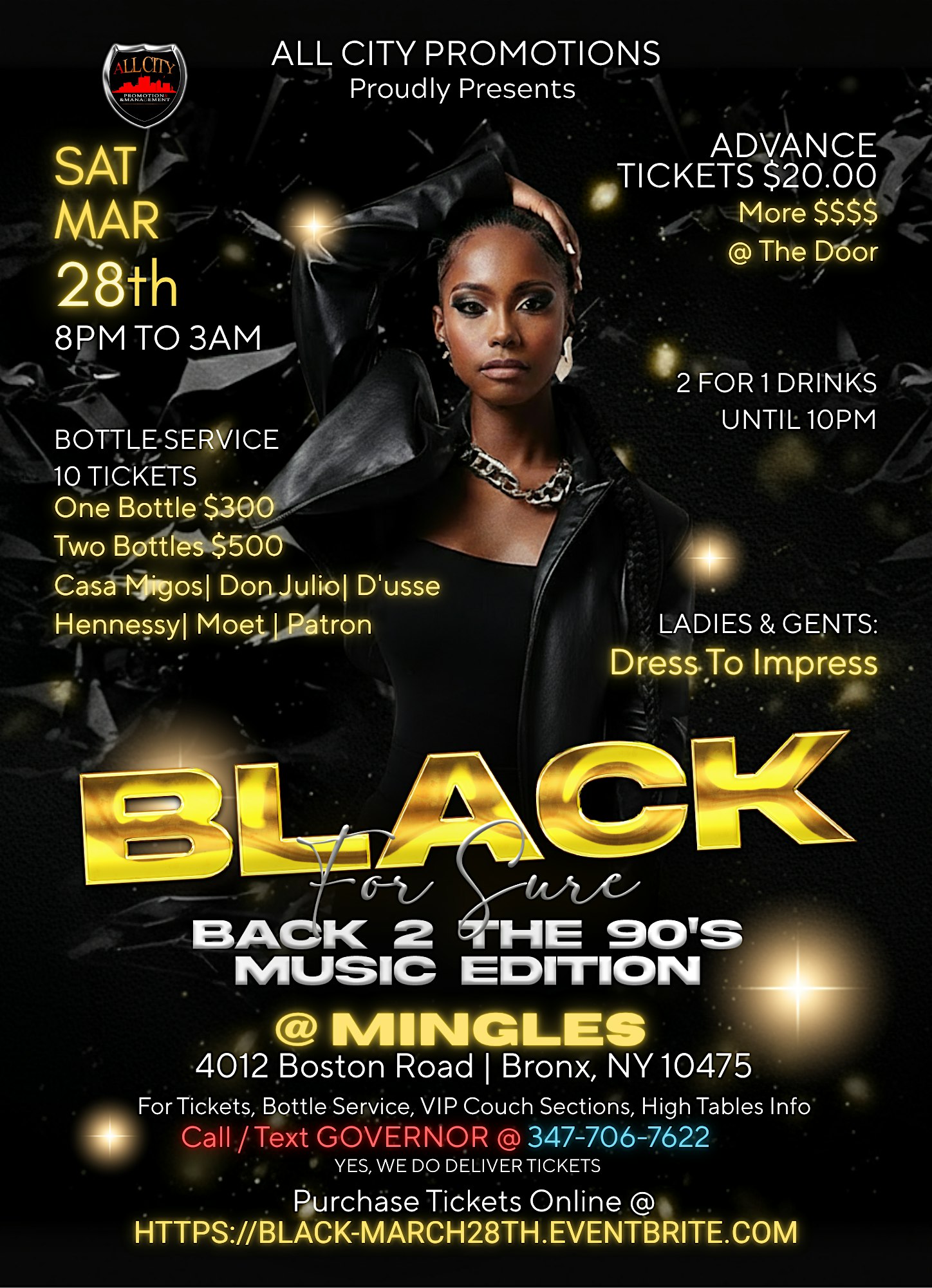by admin13Feb Sat March 28th, 2026 – BLACK For Sure @ MINGLES at Mingles Event Space + Catering + Lounge – The Bronx, NY Sat March 28th, 2026 – BLACK For Sure @ MINGLES at Mingles Event Space + Catering + Lounge – The Bronx, NY 2 2 people viewed this event. Black For Sure Tickets-RSVP Link Date And Time Sunday, March 29th, 2026 12:00 AM (PST) Venue Mingles Event Space + Catering + Lounge Location 4012 Boston Road, The Bronx, NY 10475 Event Types MusicParty or Social Gathering Event Category New YorkNew York City Share With Friends Facebook Twitter Linkedin Xing Pinterest Share This Post: