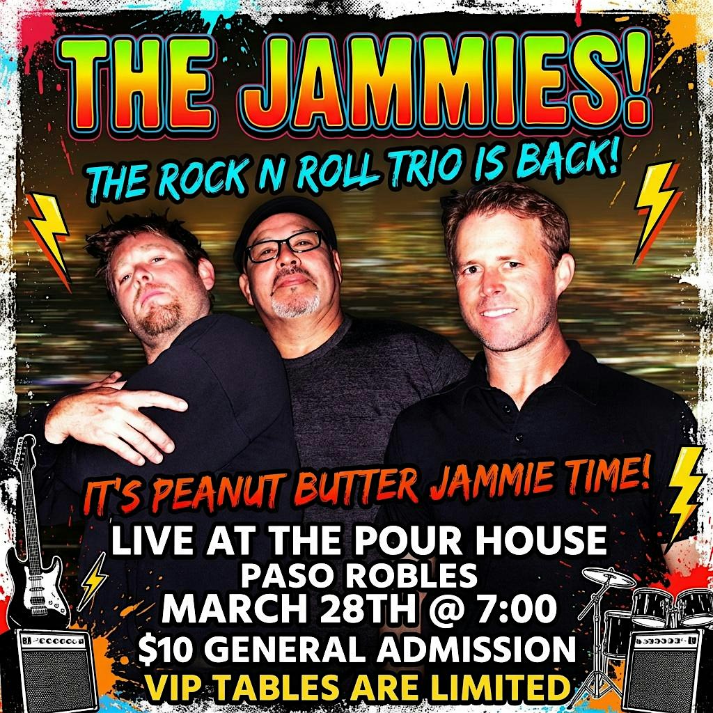 by admin13Feb THE JAMMIES are back at The Pour House! at 525 Pine St – Paso Robles, CA THE JAMMIES are back at The Pour House! at 525 Pine St – Paso Robles, CA 2 2 people viewed this event. Ain’t no night like a Jammies night! The rock n roll trio are back for one night only! Tickets-RSVP Link Date And Time Sunday, March 29th, 2026 02:00 AM (PST) Venue 525 Pine St Location 525 Pine Street, Paso Robles, CA 93446 Event Types MusicParty or Social Gathering Event Category California Share With Friends Facebook Twitter Linkedin Xing Pinterest Share This Post: