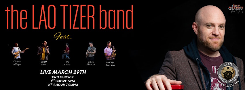 by admin13Feb The Lao Tizer band feat. Elliott Yamin, and Chieli Minucci at Crazy Uncle Mikes – Boca Raton, FL The Lao Tizer band feat. Elliott Yamin, and Chieli Minucci at Crazy Uncle Mikes – Boca Raton, FL 1 1 people viewed this event. The Lao Tizer band feat. Elliott Yamin, and Chieli Minucci is live at Crazy Uncle Mike’s! Tickets-RSVP Link Date And Time Sunday, March 29th, 2026 09:00 PM (PST) Venue Crazy Uncle Mikes Location 6450 N Federal Hwy, Boca Raton, FL 33487 Event Types Concert or PerformanceMusic Event Category Florida Share With Friends Facebook Twitter Linkedin Xing Pinterest Share This Post: