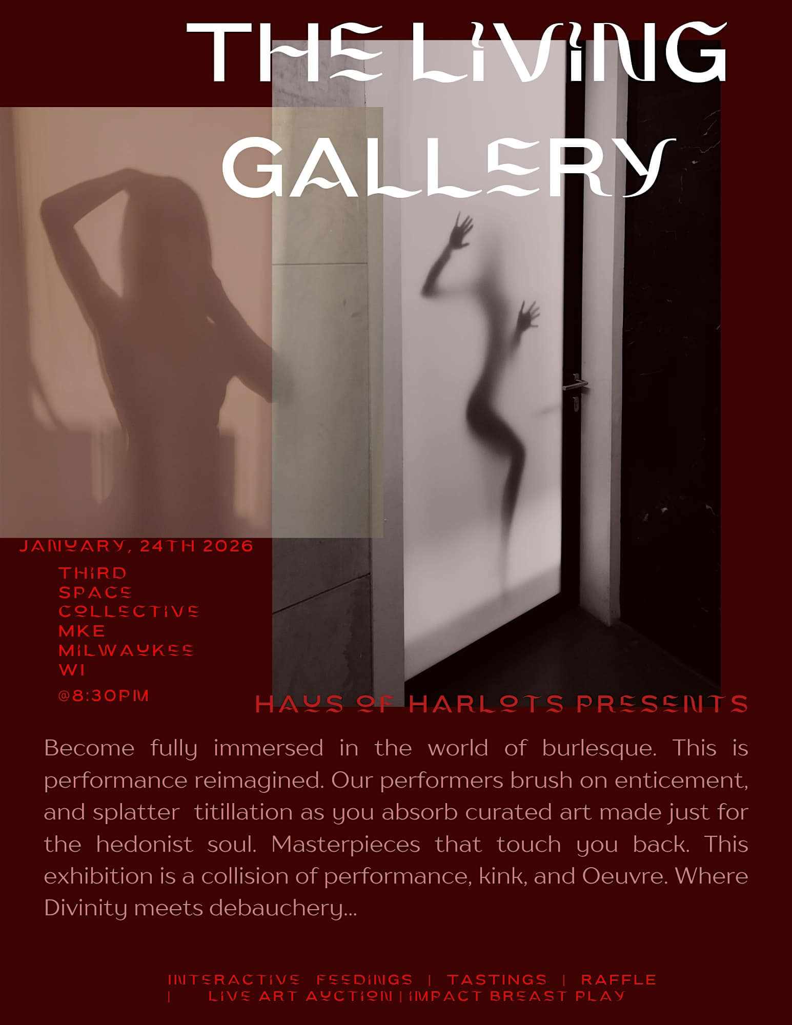 by admin14Feb The Living Gallery at 500 N 29th St – Milwaukee, WI The Living Gallery at 500 N 29th St – Milwaukee, WI 1 1 people viewed this event. Step inside the Living Gallery, where performers become living art. Experience an immersive showcase celebrating sensuality and creativity. Tickets-RSVP Link Date And Time Sunday, March 29th, 2026 01:00 AM (PST) Venue 500 N 29th St Location 500 North 29th Street, Milwaukee, WI 53208 Event Types Concert or PerformancePerforming & Visual Arts Event Category MilwaukeeWisconsin Share With Friends Facebook Twitter Linkedin Xing Pinterest Share This Post:
