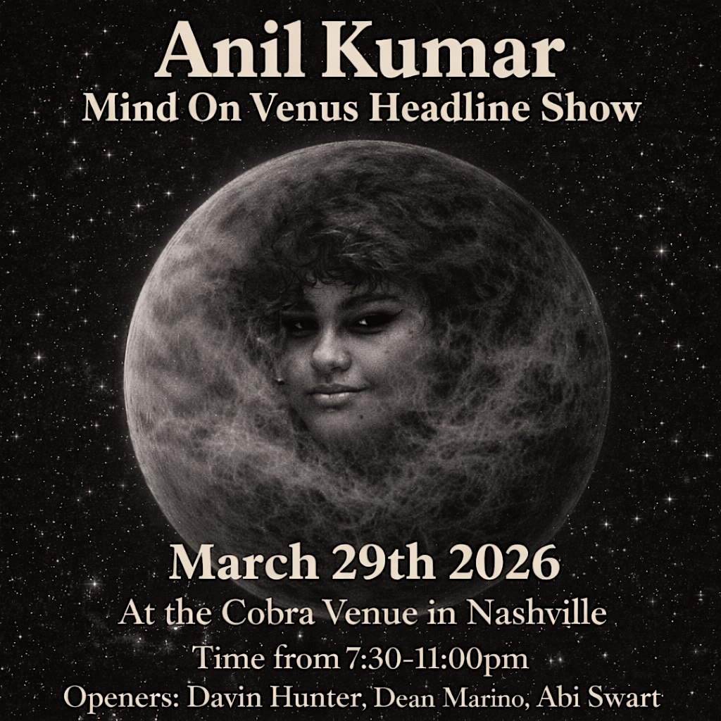by admin27Feb Venue: Anil Kumar | Davin Hunter | Dean Marino | Abi Swart at Cobra Nashville – Nashville, TN Venue: Anil Kumar | Davin Hunter | Dean Marino | Abi Swart at Cobra Nashville – Nashville, TN 2 2 people viewed this event. 18 and UP + Tickets-RSVP Link Date And Time Sunday, March 29th, 2026 07:00 PM (PST) Venue Cobra Nashville Location 2511 Gallatin Avenue, Nashville, TN 37206 Event Types Concert or PerformanceMusic Event Category NashvilleTennessee Share With Friends Facebook Twitter Linkedin Xing Pinterest Share This Post: