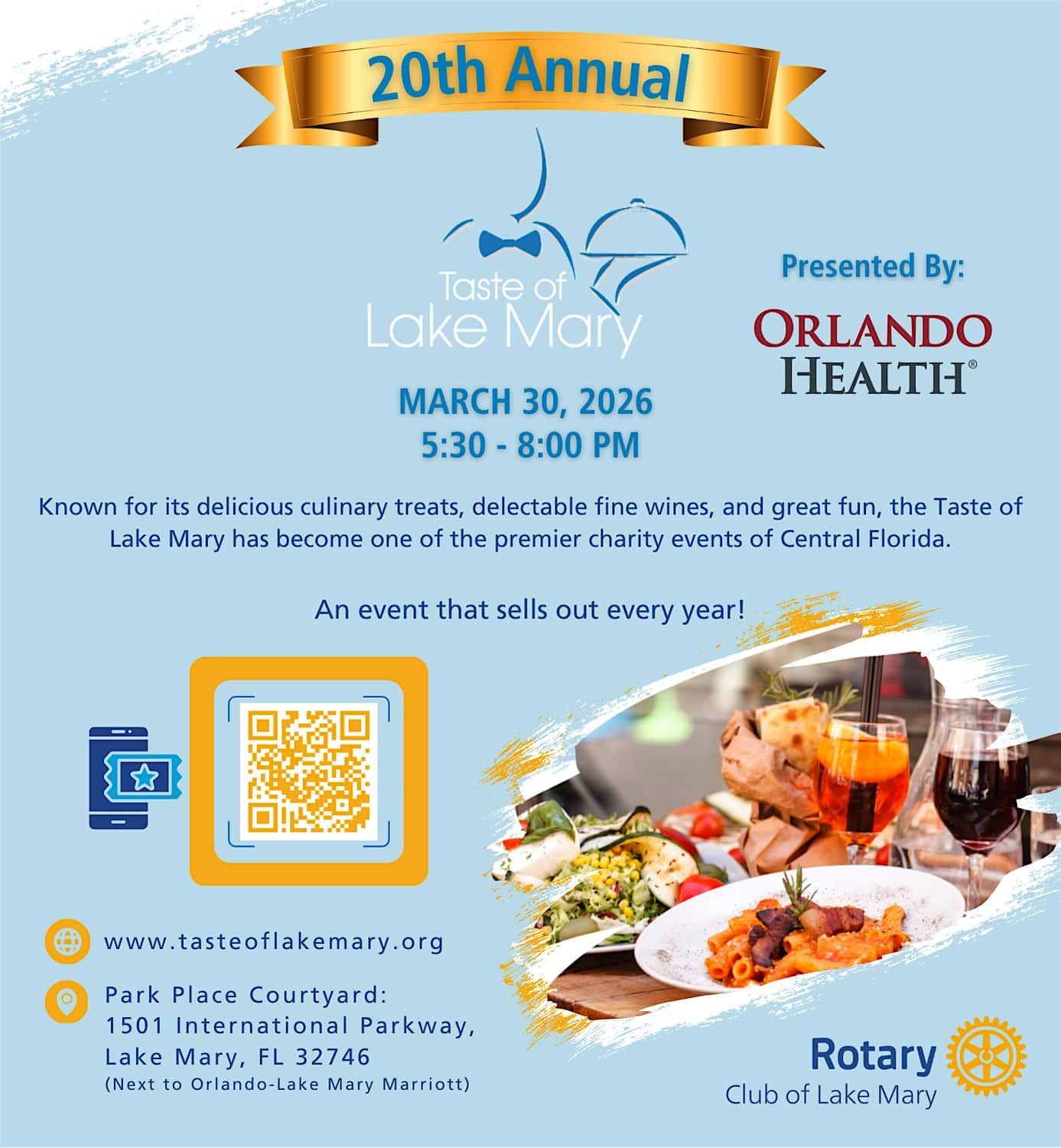 by admin14Feb 20th Annual – Taste of Lake Mary at 1501 International Pkwy – Lake Mary, FL 20th Annual – Taste of Lake Mary at 1501 International Pkwy – Lake Mary, FL 1 1 people viewed this event. Prepare to enjoy the finest flavors Lake Mary has to offer—it’s an event you won’t want to miss while supporting our community. Tickets-RSVP Link Date And Time Monday, March 30th, 2026 09:00 PM (PST) Venue 1501 International Pkwy Location 1501 International Parkway, Lake Mary, FL 32746 Event Types Food & Drink Event Category Florida Share With Friends Facebook Twitter Linkedin Xing Pinterest Share This Post: