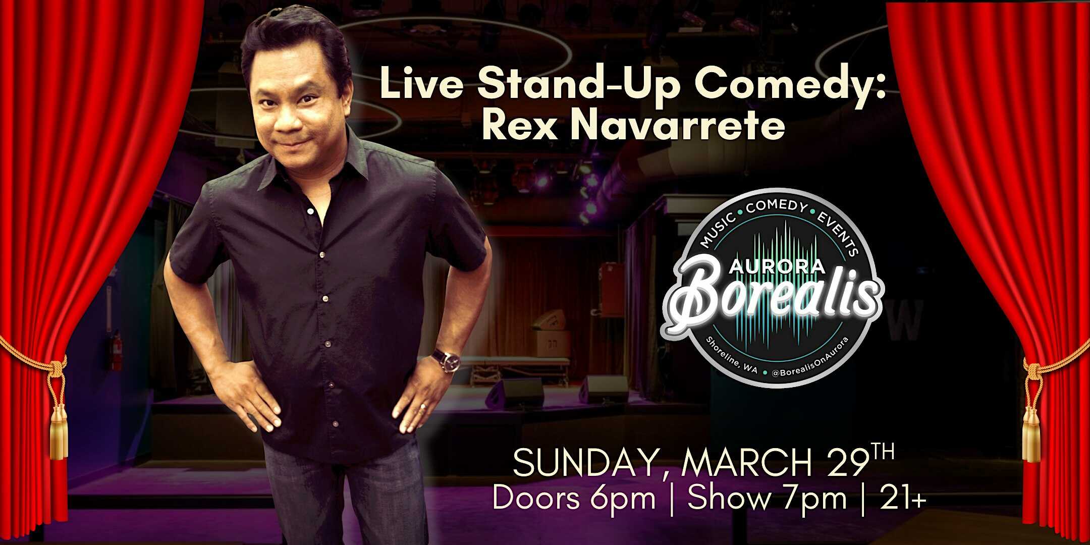 by admin14Feb Live Stand-Up Comedy: Rex Navarrete at Aurora Borealis – Borealis Event Center – Shoreline, WA Live Stand-Up Comedy: Rex Navarrete at Aurora Borealis – Borealis Event Center – Shoreline, WA 1 1 people viewed this event. Comedy vet Rex Navarrete—seen worldwide and alongside the greats—hits the stage with nonstop laughs and real-life stories. Tickets-RSVP Link Date And Time Monday, March 30th, 2026 02:00 AM (PST) Venue Aurora Borealis - Borealis Event Center Location 16708 Aurora Avenue North, Shoreline, WA 98133 Event Types Concert or PerformancePerforming & Visual Arts Event Category SeattleWashington Share With Friends Facebook Twitter Linkedin Xing Pinterest Share This Post:
