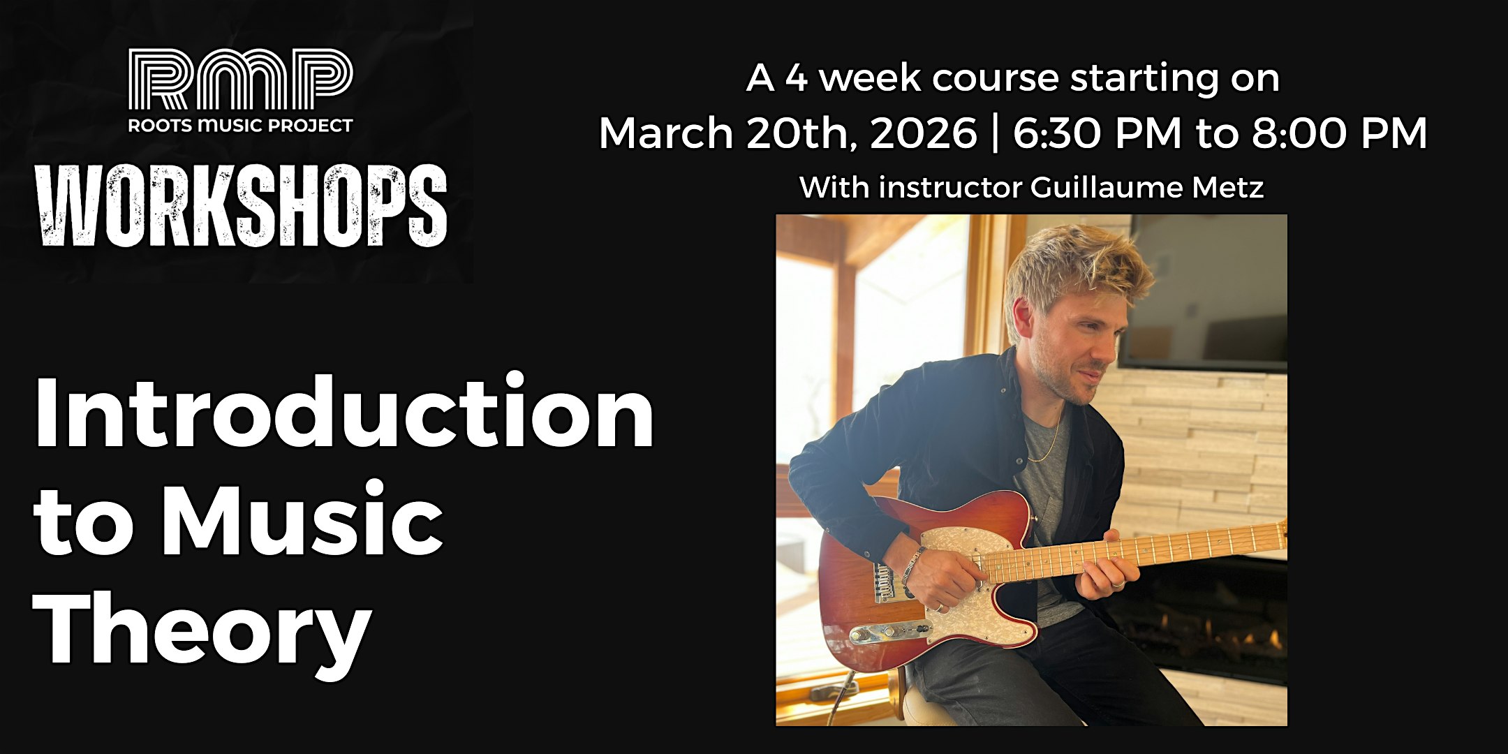 by admin24Feb Roots Music Project Workshop: Intro to Music Theory (4 Week Course) at Roots Music Project – Boulder, CO Roots Music Project Workshop: Intro to Music Theory (4 Week Course) at Roots Music Project – Boulder, CO 2 2 people viewed this event. Demystify music theory with practical lessons. Learn scales, chords & progressions on your instrument. All levels welcome. Guitar-friendly f Tickets-RSVP Link Date And Time Monday, March 30th, 2026 06:00 PM (PST) Venue Roots Music Project Location 4747 Pearl, Boulder, CO 80301 Event Types Music Event Category BoulderColorado Share With Friends Facebook Twitter Linkedin Xing Pinterest Share This Post:
