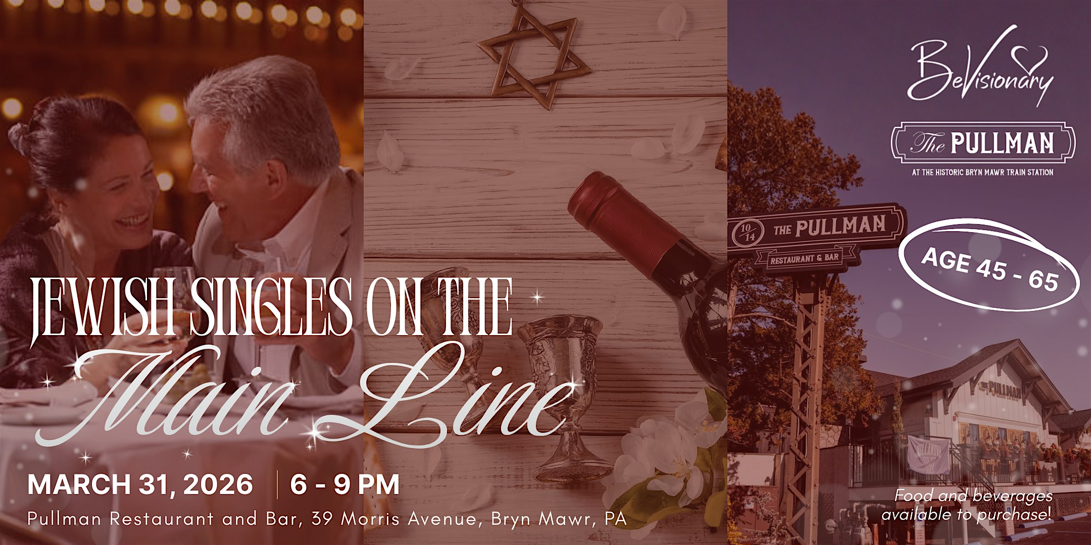 by admin27Feb Jewish Singles on the Main Line at The Pullman Restaurant and Bar – Bryn Mawr, PA Jewish Singles on the Main Line at The Pullman Restaurant and Bar – Bryn Mawr, PA 2 2 people viewed this event. Jewish singles 45–59 gather March 31st at The Pullman-Bryn Mawr for a relaxed, upscale night of meaningful connection. Tickets-RSVP Link Date And Time Tuesday, March 31st, 2026 @ 06:00 PM Location 39 Morris Avenue, Bryn Mawr, PA 19010 Event Types Party or Social Gathering Event Category PennsylvaniaPhiladelphia Share With Friends Facebook Twitter Linkedin Xing Pinterest Share This Post: