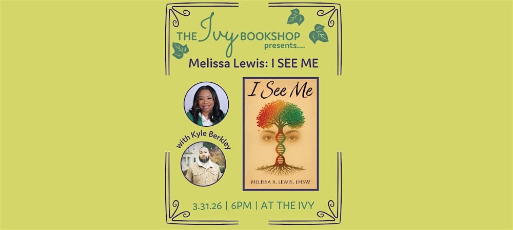 by admin14Feb Melissa Lewis with Kyle Berkley: I SEE ME at Ivy Bookshop – Baltimore, MD Melissa Lewis with Kyle Berkley: I SEE ME at Ivy Bookshop – Baltimore, MD 1 1 people viewed this event. Tickets-RSVP Link Date And Time Tuesday, March 31st, 2026 10:00 PM (PST) Venue Ivy Bookshop Location 5928 Falls Road, Baltimore, MD 21209 Event Types Concert or PerformancePerforming & Visual Arts Event Category BaltimoreMaryland Share With Friends Facebook Twitter Linkedin Xing Pinterest Share This Post: