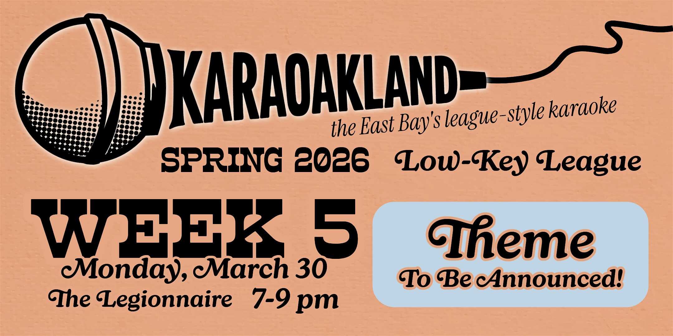 by admin14Feb Spring 2026 Low-Key League Week 5 at The Legionnaire Saloon, Telegraph Avenue, Oakland, CA, USA – Oakland, CA Spring 2026 Low-Key League Week 5 at The Legionnaire Saloon, Telegraph Avenue, Oakland, CA, USA – Oakland, CA 1 1 people viewed this event. Join us for Week 5 of the Spring 2026 Low-Key League at The Legionnaire! Tickets-RSVP Link Date And Time Tuesday, March 31st, 2026 02:00 AM (PST) Venue The Legionnaire Saloon, Telegraph Avenue, Oakland, CA, USA Location 2272 Telegraph Avenue, Oakland, CA 94612 Event Types Concert or PerformancePerforming & Visual Arts Event Category CaliforniaOakland Share With Friends Facebook Twitter Linkedin Xing Pinterest Share This Post: