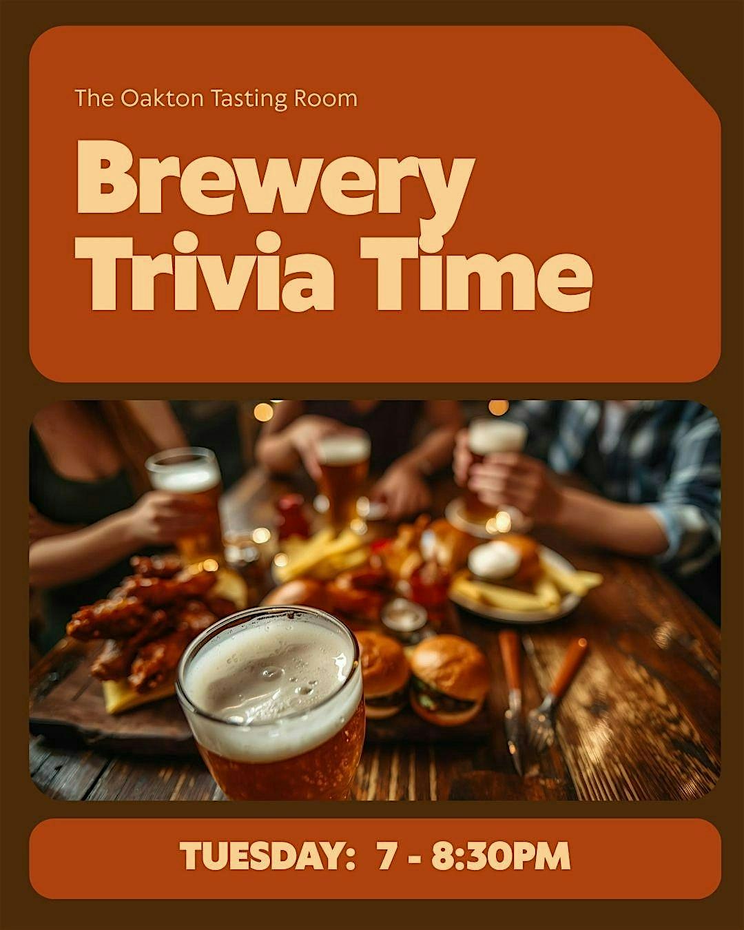 Trivia – Every Tuesday The Oakton Tasting Room at The Oakton Tasting Room – Oakton, VA Trivia – Every Tuesday The Oakton Tasting Room at The Oakton Tasting Room – Oakton, VA 1 1 people viewed this event. Join The Oakton Tasting Room for Trivia every Tuesday Night 7-8:30pm Tickets-RSVP Link Register for event Date And Time Tuesday, March 31st, 2026 @ 07:00 PM Location 2952 Chain Bridge Rd, Oakton, VA 22124 Event Types Food & DrinkGame or Competition Event Category Virginia Share With Friends Facebook Twitter Linkedin Xing Pinterest