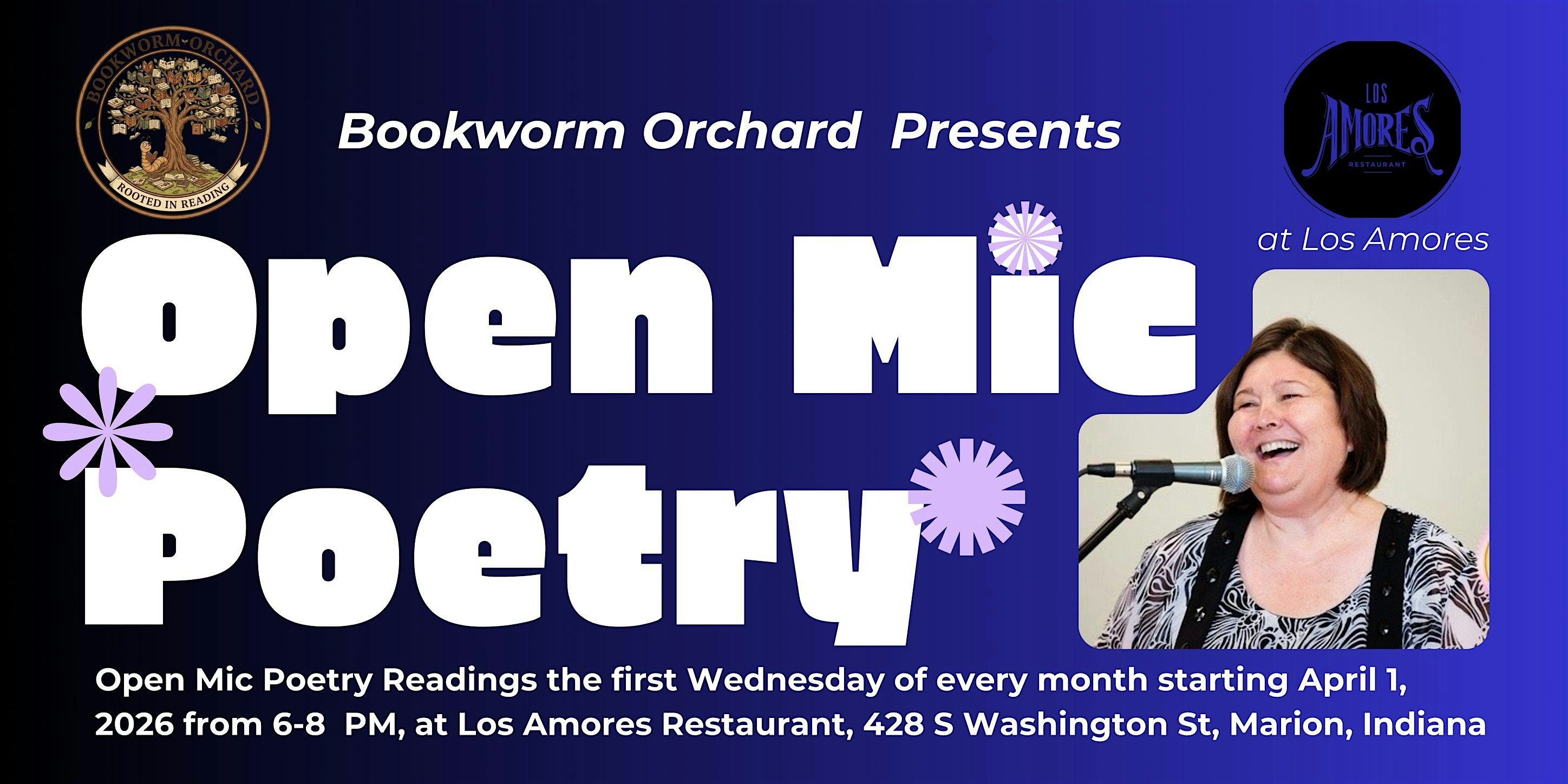 by admin13Feb Poetry & Prose Open Mic at Los Amores Restaurant & Cantina – Marion, IN Poetry & Prose Open Mic at Los Amores Restaurant & Cantina – Marion, IN 2 2 people viewed this event. Bookworm Orchard Presents Poetry Open Mic Night the first Wednesday of every month starting April 1, 2026, 6-8 PM, at Los Amores Restaurant Tickets-RSVP Link Date And Time Wednesday, April 1st, 2026 10:00 PM (PST) Venue Los Amores Restaurant & Cantina Location 428 South Washington Street, Marion, IN 46953 Event Types Party or Social GatheringPerforming & Visual Arts Event Category Indiana Share With Friends Facebook Twitter Linkedin Xing Pinterest Share This Post: