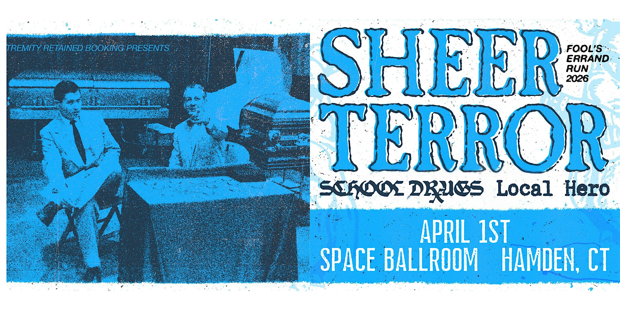 by admin27Feb Sheer Terror at Space Ballroom – Hamden, CT Sheer Terror at Space Ballroom – Hamden, CT 1 1 people viewed this event. with School Drugs, Local Hero Tickets-RSVP Link Date And Time Wednesday, April 1st, 2026 08:00 PM (PST) Venue Space Ballroom Location 295 Treadwell Street, Hamden, CT 6514 Event Types Concert or PerformanceMusic Event Category BridgeportConnecticut Share With Friends Facebook Twitter Linkedin Xing Pinterest Share This Post: