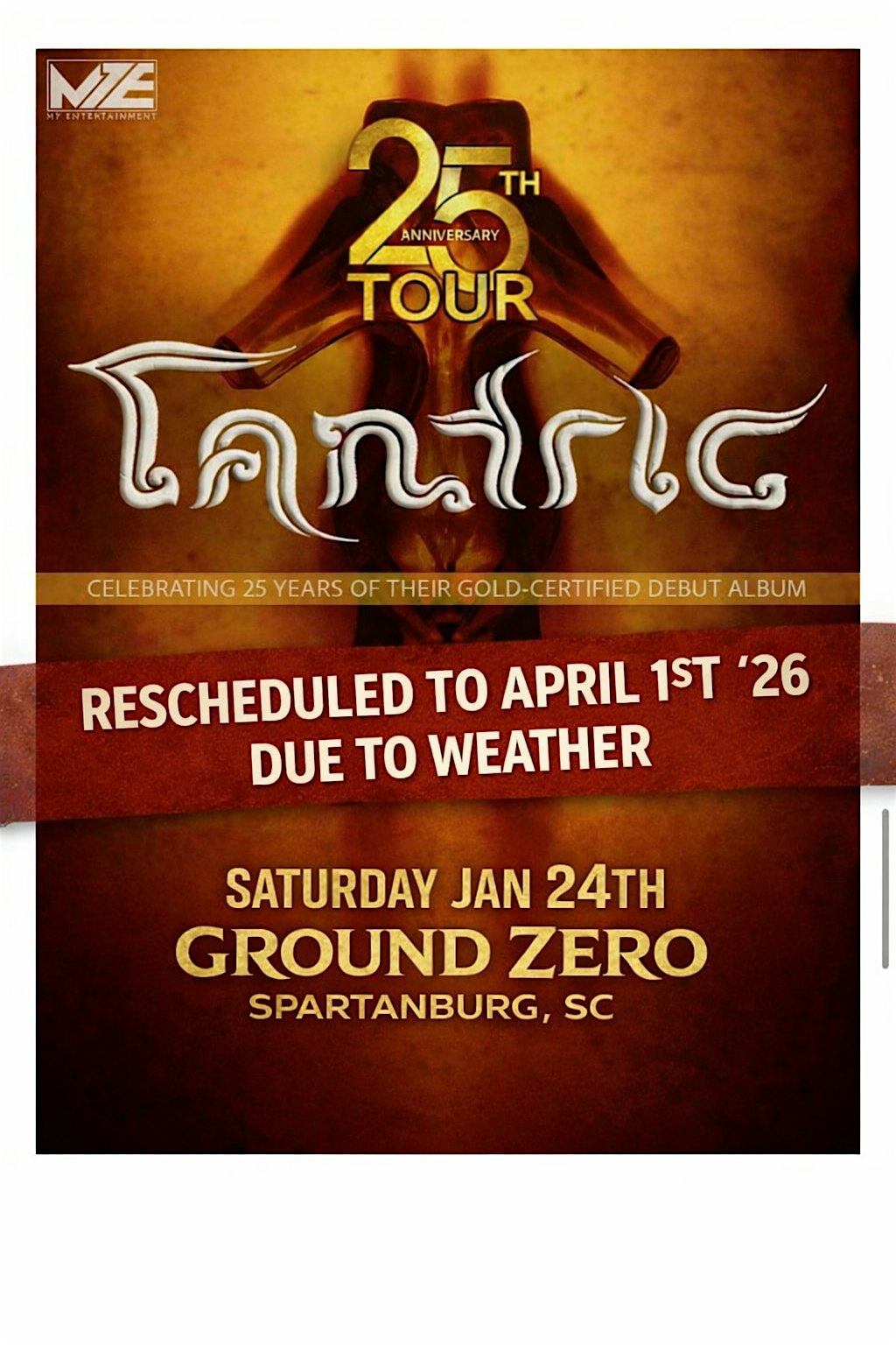 by admin13Feb Tantric 25th Anniversary at Ground Zero Live Music Venue – Spartanburg, SC Tantric 25th Anniversary at Ground Zero Live Music Venue – Spartanburg, SC 2 2 people viewed this event. Tantric 25th Anniversary Tour. Will be performing debut album and all their hits Tickets-RSVP Link Date And Time Wednesday, April 1st, 2026 10:00 PM (PST) Venue Ground Zero Live Music Venue Location 3052 Howard Street, Spartanburg, SC 29303 Event Types MusicParty or Social Gathering Event Category South Carolina Share With Friends Facebook Twitter Linkedin Xing Pinterest Share This Post:
