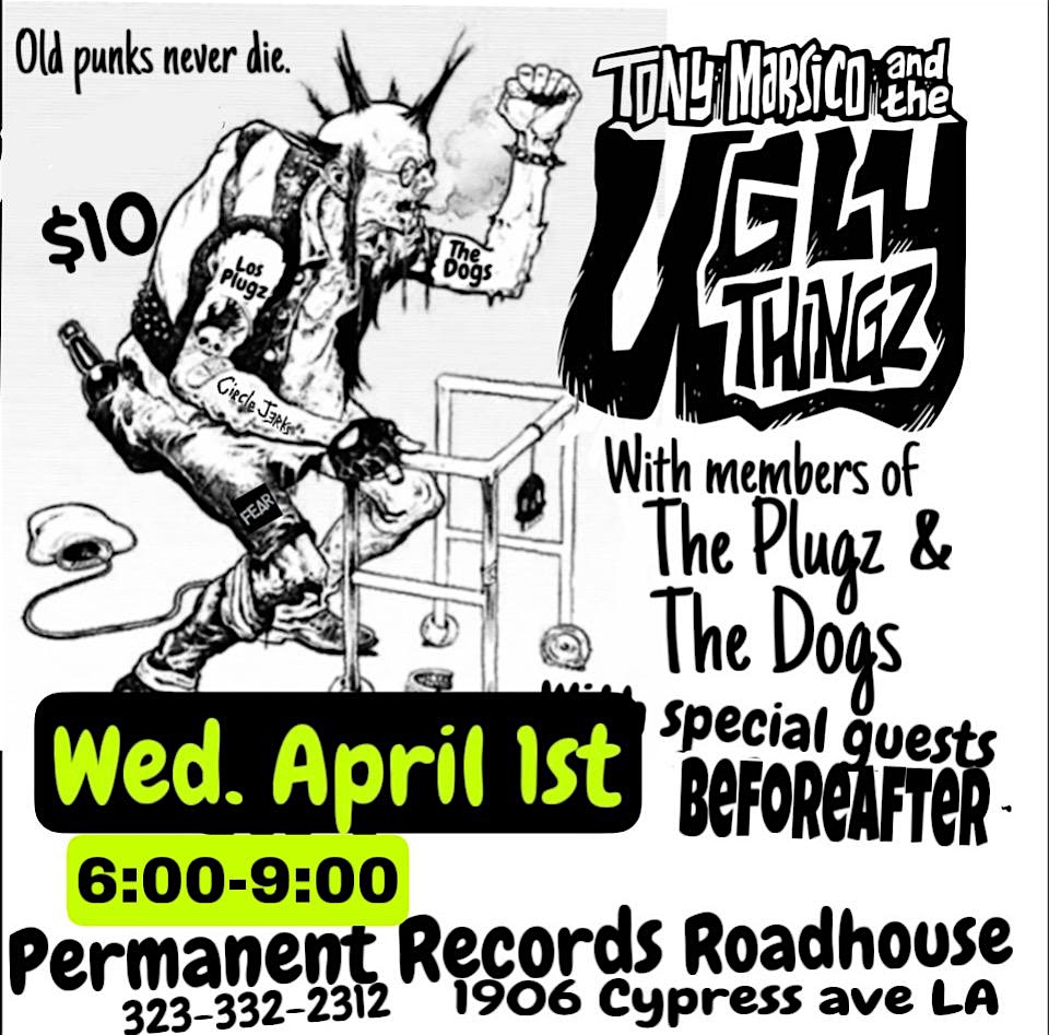 by admin24Feb Tony Marisco and the Ugly Thingz at Permanent Records Roadhouse – Los Angeles, CA Tony Marisco and the Ugly Thingz at Permanent Records Roadhouse – Los Angeles, CA 1 1 people viewed this event. This event is 21+ only. We will check IDs at the door. There are no refunds if you are turned away. Tickets-RSVP Link Date And Time Wednesday, April 1st, 2026 06:00 PM (PST) Venue Permanent Records Roadhouse Location 1906 Cypress Avenue, Los Angeles, CA 90065 Event Types Concert or PerformanceMusic Event Category CaliforniaLos Angeles Share With Friends Facebook Twitter Linkedin Xing Pinterest Share This Post: