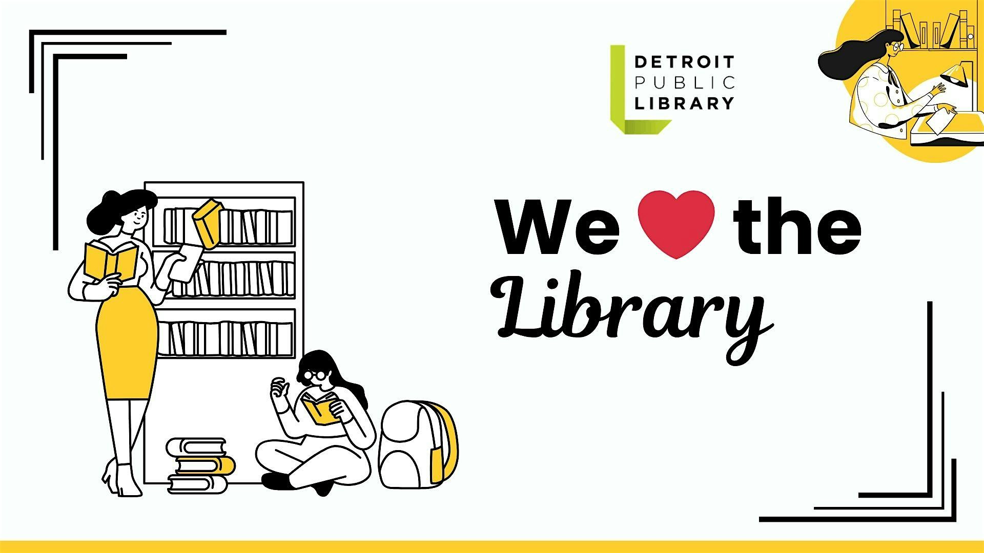 by admin13Feb We <3 the Library at Wilder | Detroit Public Library - Detroit, MI We <3 the Library at Wilder | Detroit Public Library - Detroit, MI 2 2 people viewed this event. Stop in during the month of April at Wilder Branch to write about why you love the library! Tickets-RSVP Link Date And Time Wednesday, April 1st, 2026 04:00 PM (PST) Venue Wilder | Detroit Public Library Location 7140 Seven Mile East, Detroit, MI 48234 Event Types Community & CultureParty or Social Gathering Event Category DetroitMichigan Share With Friends Facebook Twitter Linkedin Xing Pinterest Share This Post: