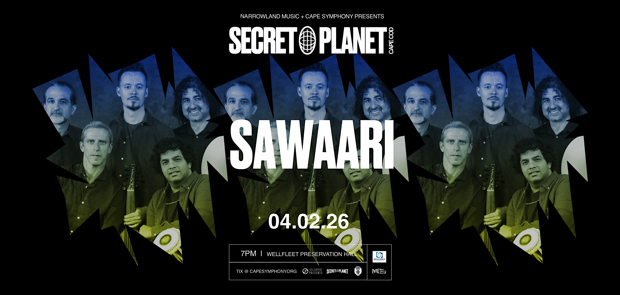 by admin13Feb Secret Planet Cape Cod ft. Sawaari at Wellfleet Preservation Hall – Wellfleet, MA Secret Planet Cape Cod ft. Sawaari at Wellfleet Preservation Hall – Wellfleet, MA 1 1 people viewed this event. From India to North Africa—one stage, infinite grooves. Tickets-RSVP Link Date And Time Thursday, April 2nd, 2026 11:00 PM (PST) Venue Wellfleet Preservation Hall Location 335 Main Street, Wellfleet, MA 2667 Event Types Concert or PerformanceMusic Event Category Massachusetts Share With Friends Facebook Twitter Linkedin Xing Pinterest Share This Post: