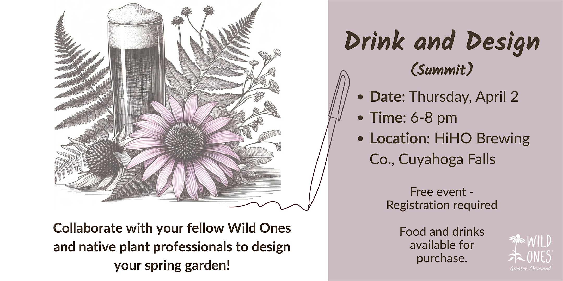 by admin23Feb Wild Ones Greater Cleveland Drink and Design! at HiHO Brewing Co. – Cuyahoga Falls, OH Wild Ones Greater Cleveland Drink and Design! at HiHO Brewing Co. – Cuyahoga Falls, OH 1 1 people viewed this event. Collaborate with your fellow Wild Ones and native plant professionals to design your spring garden! Tickets-RSVP Link Date And Time Thursday, April 2nd, 2026 06:00 PM (PST) Venue HiHO Brewing Co. Location 1707 Front Street, Cuyahoga Falls, OH 44221 Event Types Food & DrinkParty or Social Gathering Event Category AkronOhio Share With Friends Facebook Twitter Linkedin Xing Pinterest Share This Post: