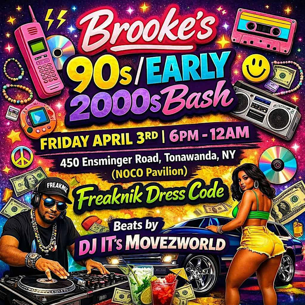 by admin23Feb Brooke’s 90s/Early 2000s Bash at 450 Ensminger Rd – Tonawanda, NY Brooke’s 90s/Early 2000s Bash at 450 Ensminger Rd – Tonawanda, NY 2 2 people viewed this event. Get ready to party old-school style with 90s and early 2000s jams, vibes, and throwback fun all night! Tickets-RSVP Link Date And Time Friday, April 3rd, 2026 06:00 PM (PST) Venue 450 Ensminger Rd Location 450 Ensminger Road, Tonawanda, NY 14150 Event Types MusicParty or Social Gathering Event Category BuffaloNew York Share With Friends Facebook Twitter Linkedin Xing Pinterest Share This Post: