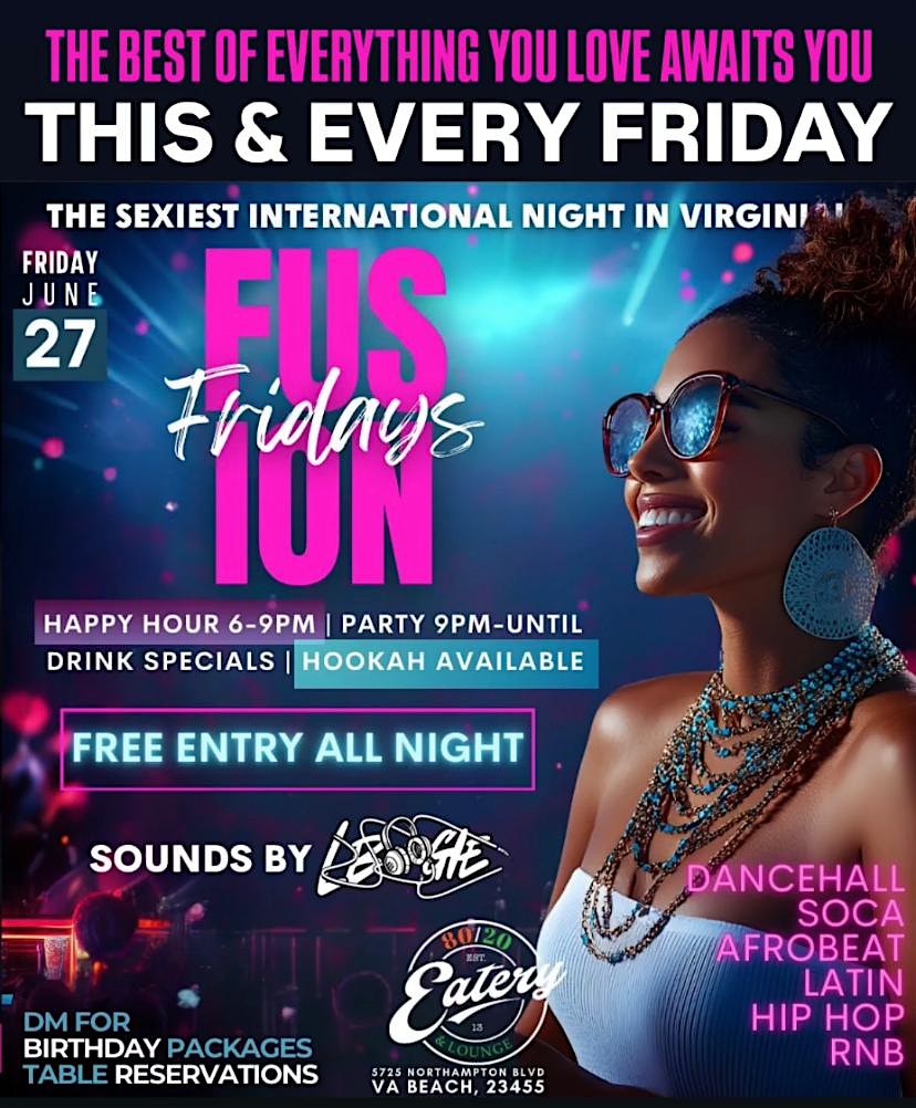 by admin24Feb Fusion Fridays at 8020 EATERY – Virginia Beach, VA Fusion Fridays at 8020 EATERY – Virginia Beach, VA 5 5 people viewed this event. Sis, your Friday plans are set.✨ Fusion Fridays at @8020eatery — where Afrobeats, Soca, R&B & Latin vibes meet good energy. Free entry. Happ Tickets-RSVP Link Date And Time Friday, April 3rd, 2026 08:00 PM (PST) Venue 8020 EATERY Location 5725 Northampton Boulevard, Virginia Beach, VA 23455 Event Types MusicParty or Social Gathering Event Category VirginiaVirginia Beach Share With Friends Facebook Twitter Linkedin Xing Pinterest Share This Post: