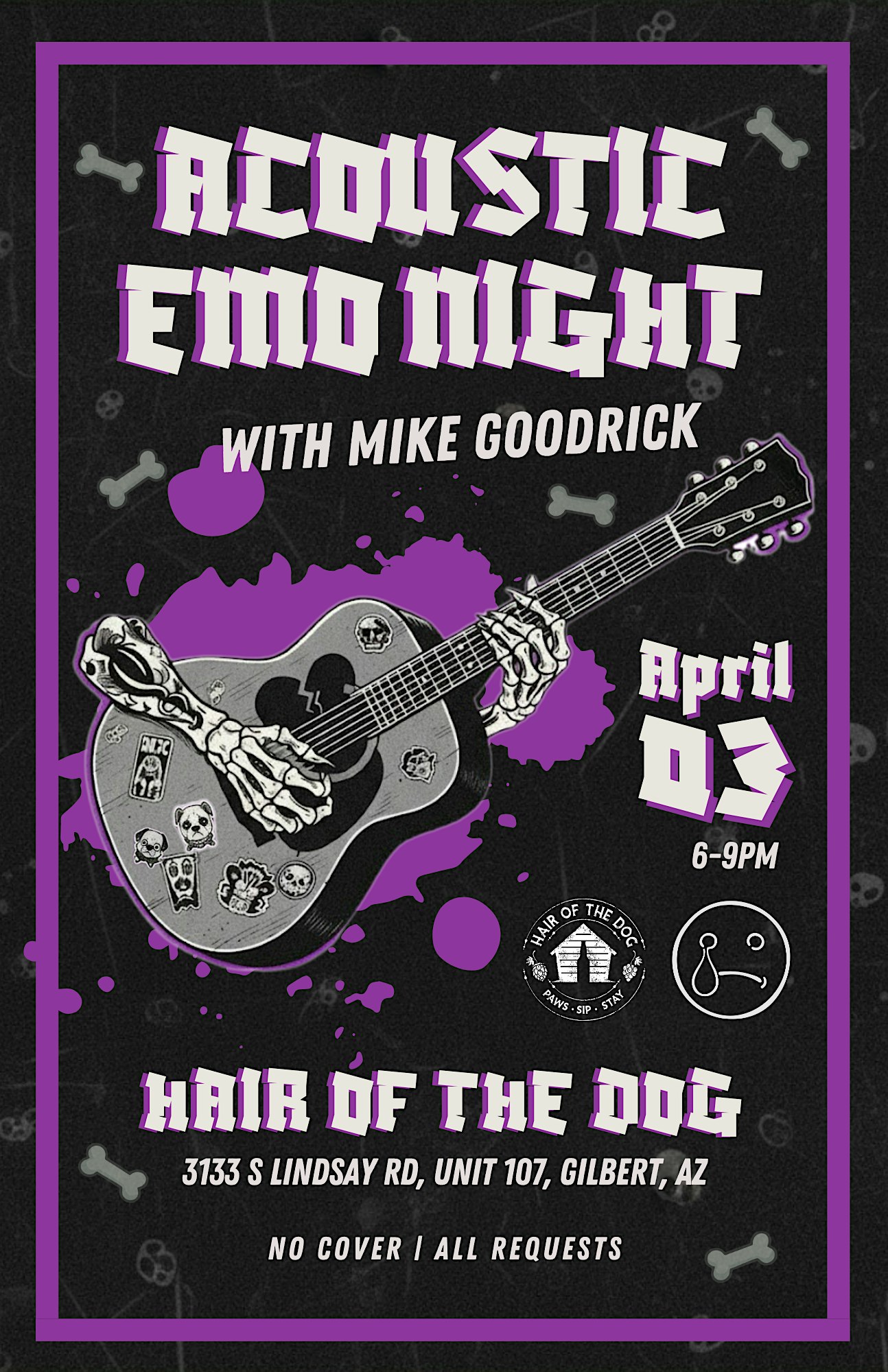 by admin24Feb Hair of the Dog Emo Night at Hair of the Dog Gilbert, AZ – Coffee, Wine, Beer – Gilbert, AZ Hair of the Dog Emo Night at Hair of the Dog Gilbert, AZ – Coffee, Wine, Beer – Gilbert, AZ 1 1 people viewed this event. Sing along to your favorite emo anthems! Live acoustic covers of MCR, Fall Out Boy & more at Hair of the Dog. Tickets-RSVP Link Date And Time Friday, April 3rd, 2026 06:00 PM (PST) Venue Hair of the Dog Gilbert, AZ - Coffee, Wine, Beer Location 3133 South Lindsay Road, Gilbert, AZ 85295 Event Types Concert or PerformanceMusic Event Category Arizona Share With Friends Facebook Twitter Linkedin Xing Pinterest Share This Post: