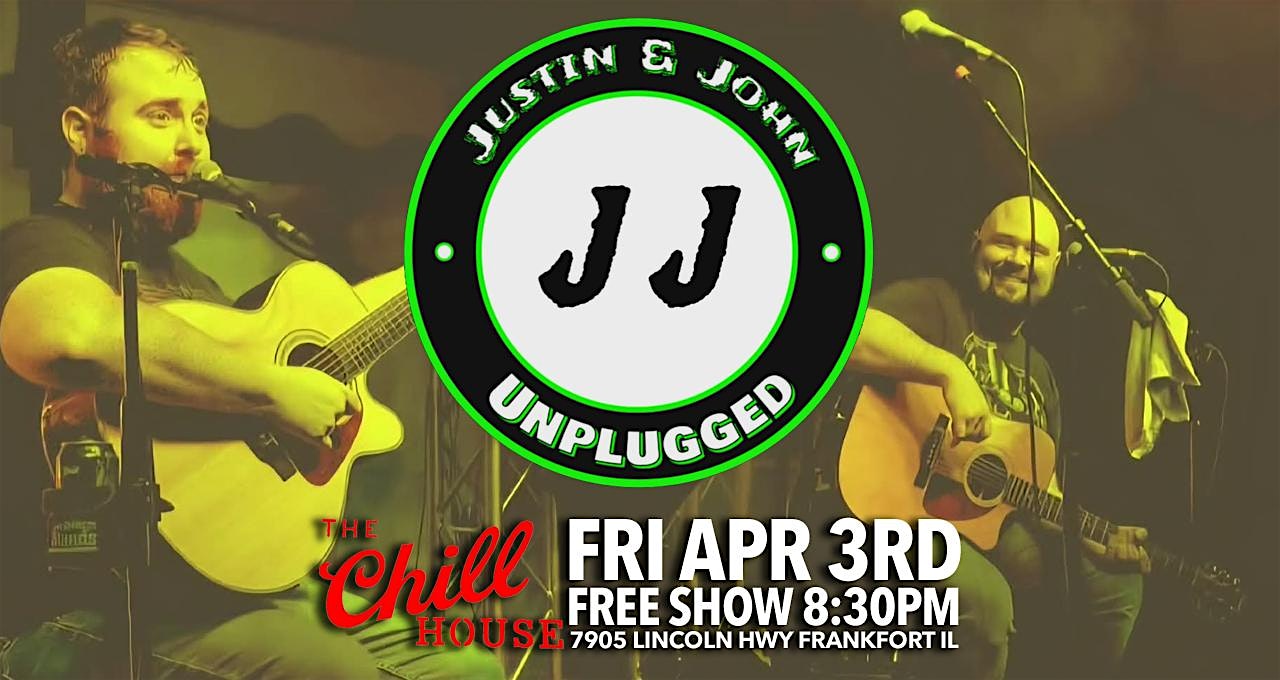by admin24Feb Justin & John Unplugged at The Chill House at 7905 W Lincoln Hwy – Frankfort, IL Justin & John Unplugged at The Chill House at 7905 W Lincoln Hwy – Frankfort, IL 2 2 people viewed this event. Chill out with Justin & John’s unplugged vibes live at The Chill House – pure, raw tunes just for you! Tickets-RSVP Link Date And Time Friday, April 3rd, 2026 08:00 PM (PST) Venue 7905 W Lincoln Hwy Location 7905 West Lincoln Highway, Frankfort, IL 60423 Event Types Concert or PerformanceMusic Event Category Illinois Share With Friends Facebook Twitter Linkedin Xing Pinterest Share This Post: