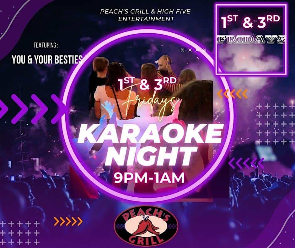 by admin23Feb Karaoke Night! at Peach’s Grill – Yellow Springs, OH Karaoke Night! at Peach’s Grill – Yellow Springs, OH 2 2 people viewed this event. Get ready to unleash your inner rockstar at Karaoke Night – it’s your time to shine on the mic! Tickets-RSVP Link Date And Time Friday, April 3rd, 2026 09:00 PM (PST) Venue Peach's Grill Location 104 Xenia Avenue, Yellow Springs, OH 45387 Event Types MusicParty or Social Gathering Event Category Ohio Share With Friends Facebook Twitter Linkedin Xing Pinterest Share This Post: