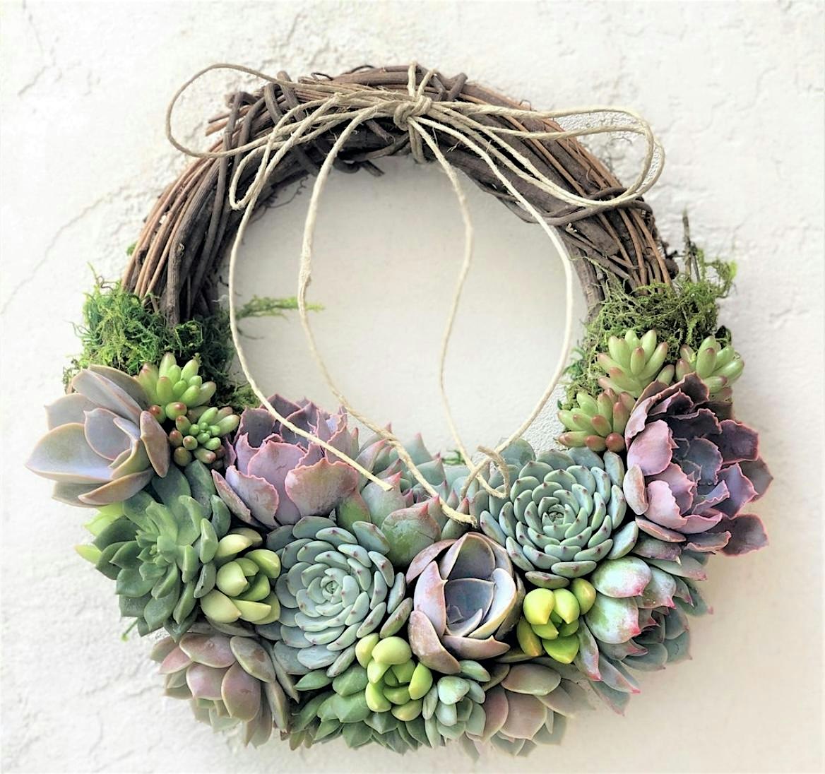 I’ll teach you all about these wonderful plants and how easy my homegrown succulents are to care for. Take home care cards are provided. You will have many choices on how to customize and create this unique and unusual grapevine wreath that will last for many seasons.