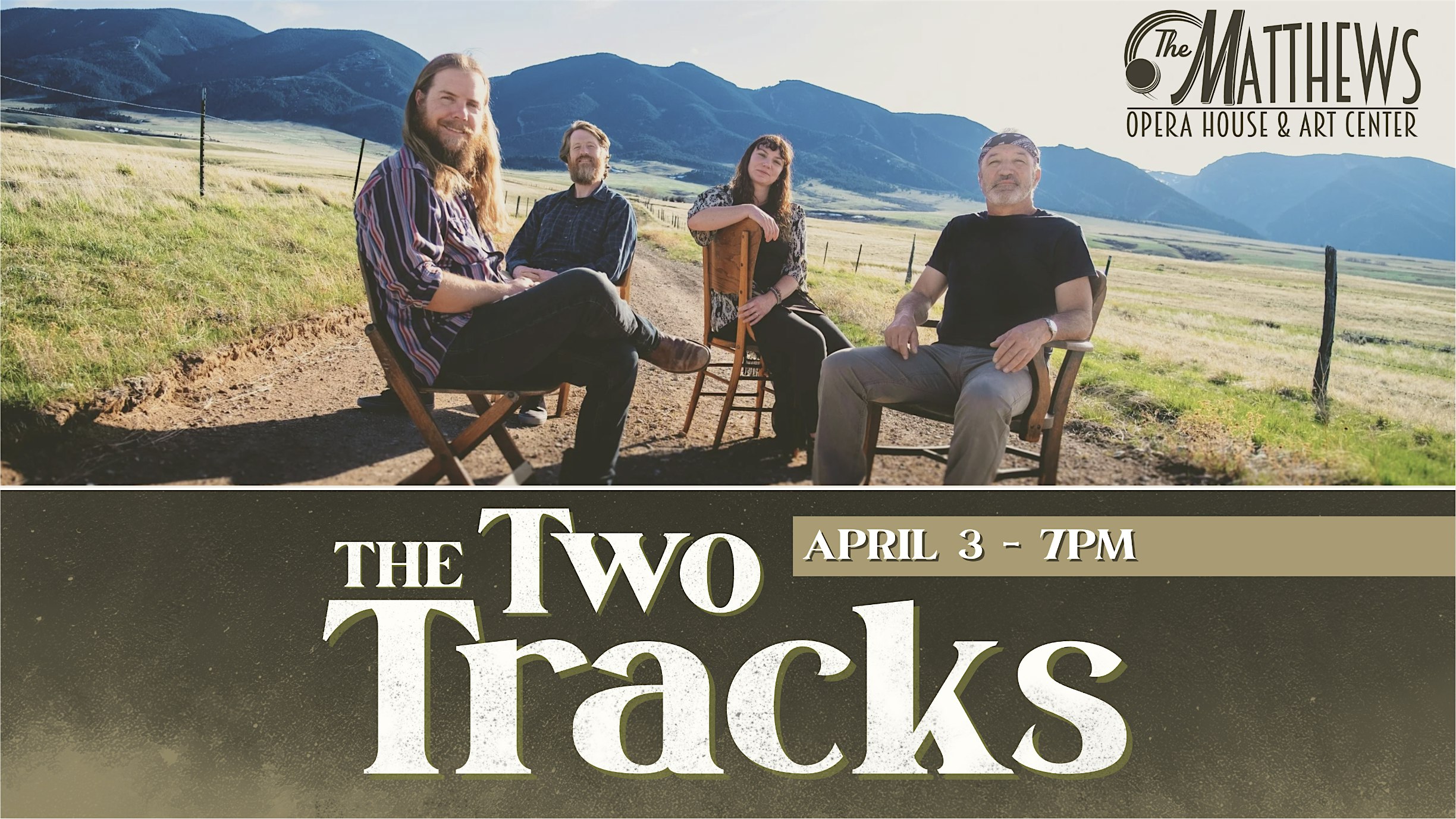 by admin24Feb The Two Tracks at The Matthews (Opera House & Arts Center) – Spearfish, SD The Two Tracks at The Matthews (Opera House & Arts Center) – Spearfish, SD 2 2 people viewed this event. The Two Tracks — acoustic Americana quartet, live at The Matthews Opera House, Spearfish SD. April 3, 2026. Tickets-RSVP Link Date And Time Friday, April 3rd, 2026 07:00 PM (PST) Venue The Matthews (Opera House & Arts Center) Location 612 North Main Street, Spearfish, SD 57783 Event Types Concert or PerformanceMusic Event Category South Dakota Share With Friends Facebook Twitter Linkedin Xing Pinterest Share This Post: