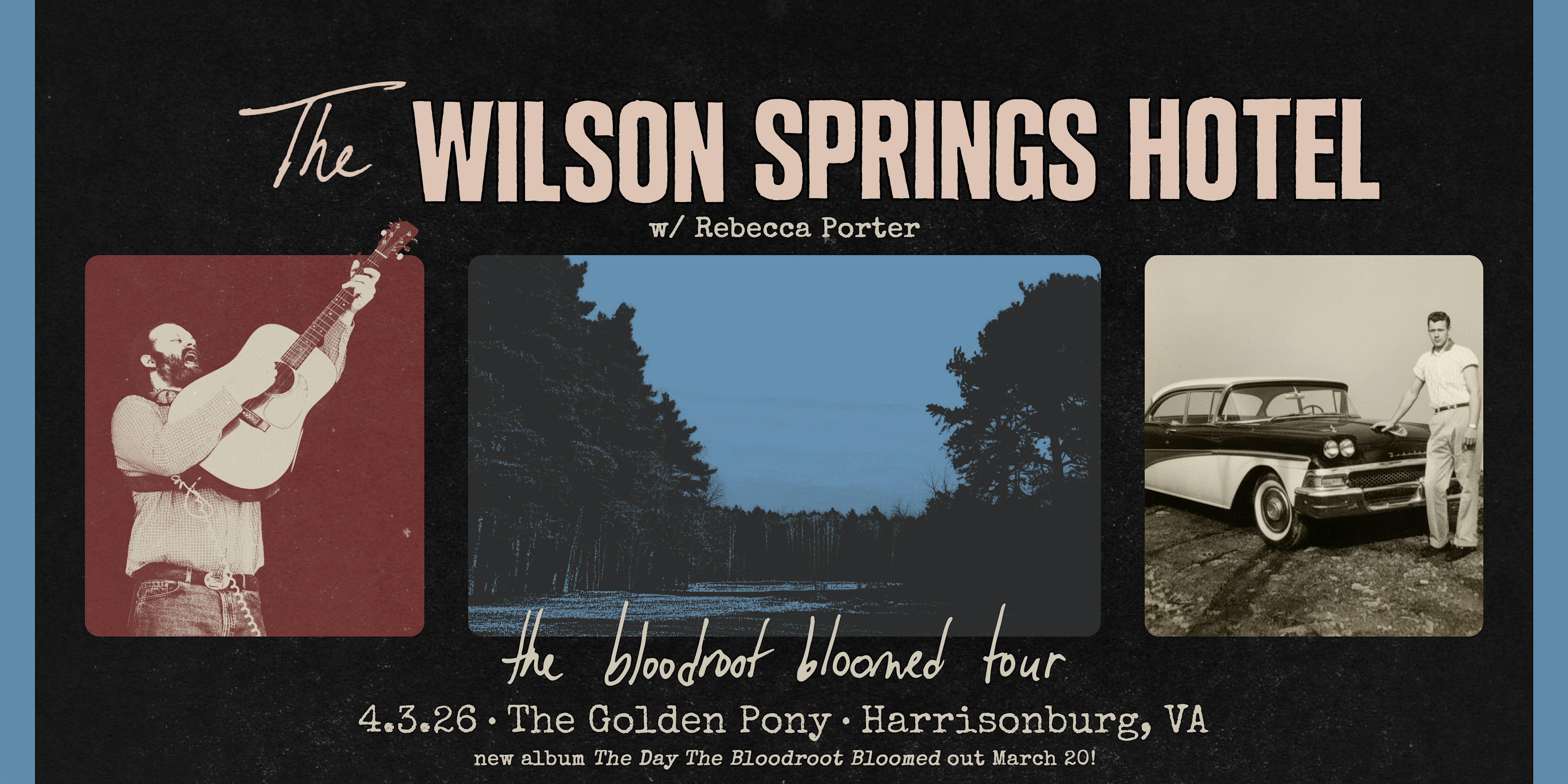 by admin24Feb The Wilson Springs Hotel at The Golden Pony (18+) at The Golden Pony – Harrisonburg, VA The Wilson Springs Hotel at The Golden Pony (18+) at The Golden Pony – Harrisonburg, VA 3 3 people viewed this event. The Wilson Springs Hotel returns to Harrisonburg at The Golden Pony! Tickets-RSVP Link Date And Time Friday, April 3rd, 2026 07:00 PM (PST) Venue The Golden Pony Location 181 North Main Street, Harrisonburg, VA 22802 Event Types Concert or PerformanceMusic Event Category Virginia Share With Friends Facebook Twitter Linkedin Xing Pinterest Share This Post: