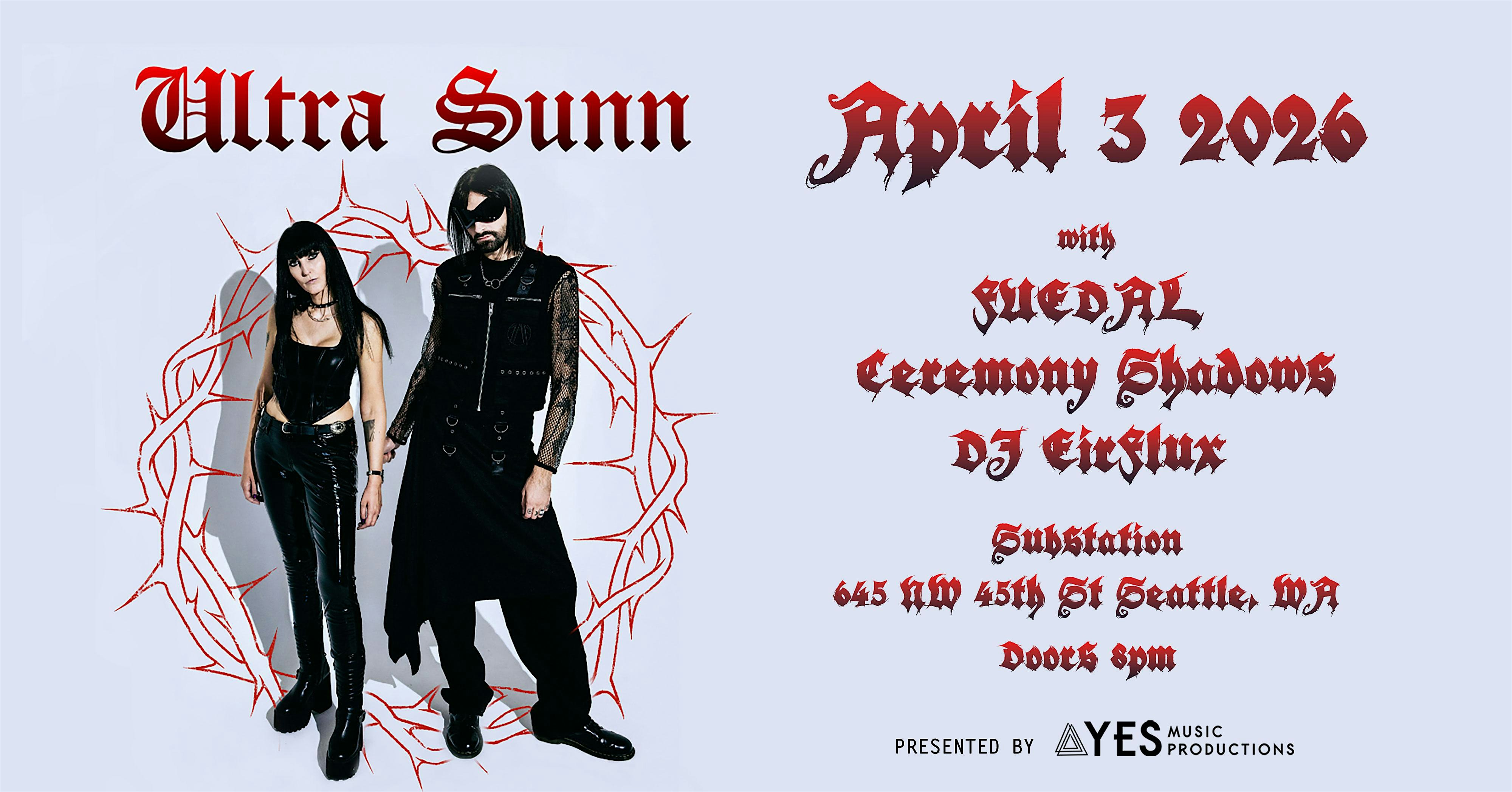 by admin24Feb YES Music Productions presents Ultra Sunn at Substation – Seattle, WA YES Music Productions presents Ultra Sunn at Substation – Seattle, WA 3 3 people viewed this event. YES Music Productions presents Ultra Sunn + special guests April 3, 2026 Tickets-RSVP Link Date And Time Friday, April 3rd, 2026 09:00 PM (PST) Venue Substation Location 645 NW 45th St, Seattle, WA 98107 Event Types Concert or PerformanceMusic Event Category SeattleWashington Share With Friends Facebook Twitter Linkedin Xing Pinterest Share This Post: