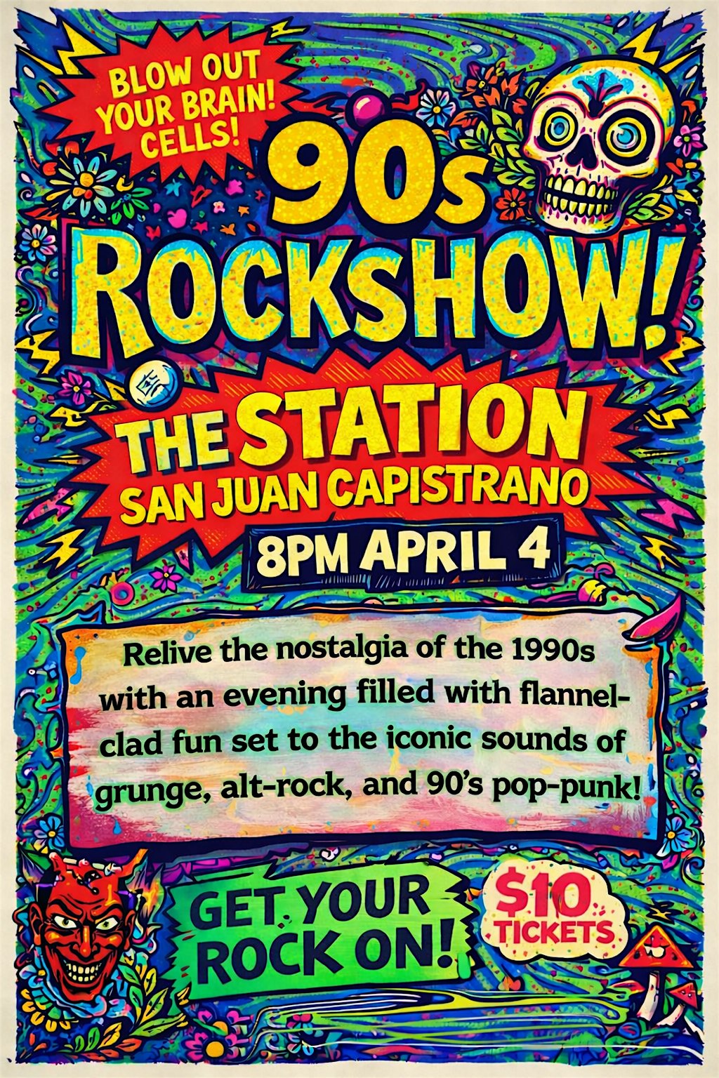 by admin24Feb 90’s Rockshow at 26701 Verdugo St suite b, San Juan Capistrano, CA, USA – San Juan Capistrano, CA 90’s Rockshow at 26701 Verdugo St suite b, San Juan Capistrano, CA, USA – San Juan Capistrano, CA 2 2 people viewed this event. Come enjoy some nostalgic 90’s music with us here at The Station in San Juan Capistrano. Let’s get our 90’s on!! Tickets-RSVP Link Date And Time Saturday, April 4th, 2026 08:00 PM (PST) Venue 26701 Verdugo St suite b, San Juan Capistrano, CA, USA Location 26701 Verdugo Street, San Juan Capistrano, CA 92675 Event Types Concert or PerformanceMusic Event Category CaliforniaIrvine Share With Friends Facebook Twitter Linkedin Xing Pinterest Share This Post: