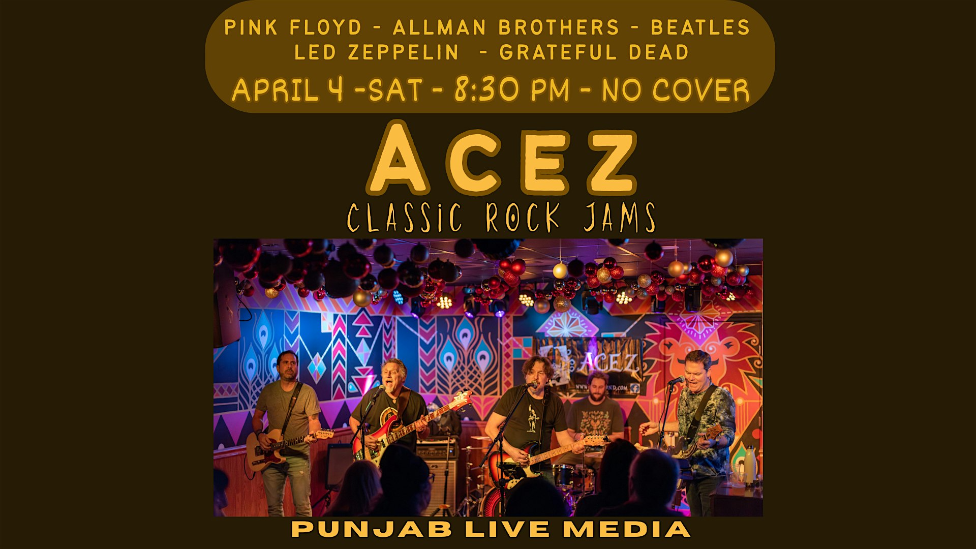 by admin24Feb Acez – Classic Rock Jams @Punjab Live at Shere-E-Punjab Indian Restaurant – Media, PA Acez – Classic Rock Jams @Punjab Live at Shere-E-Punjab Indian Restaurant – Media, PA 2 2 people viewed this event. Acez High Energy jam Band…. Plays everything you Dance. Tickets-RSVP Link Date And Time Saturday, April 4th, 2026 08:00 PM (PST) Venue Shere-E-Punjab Indian Restaurant Location 208-210 West State St, Media, PA 19063 Event Types Concert or PerformanceMusic Event Category Pennsylvania Share With Friends Facebook Twitter Linkedin Xing Pinterest Share This Post: