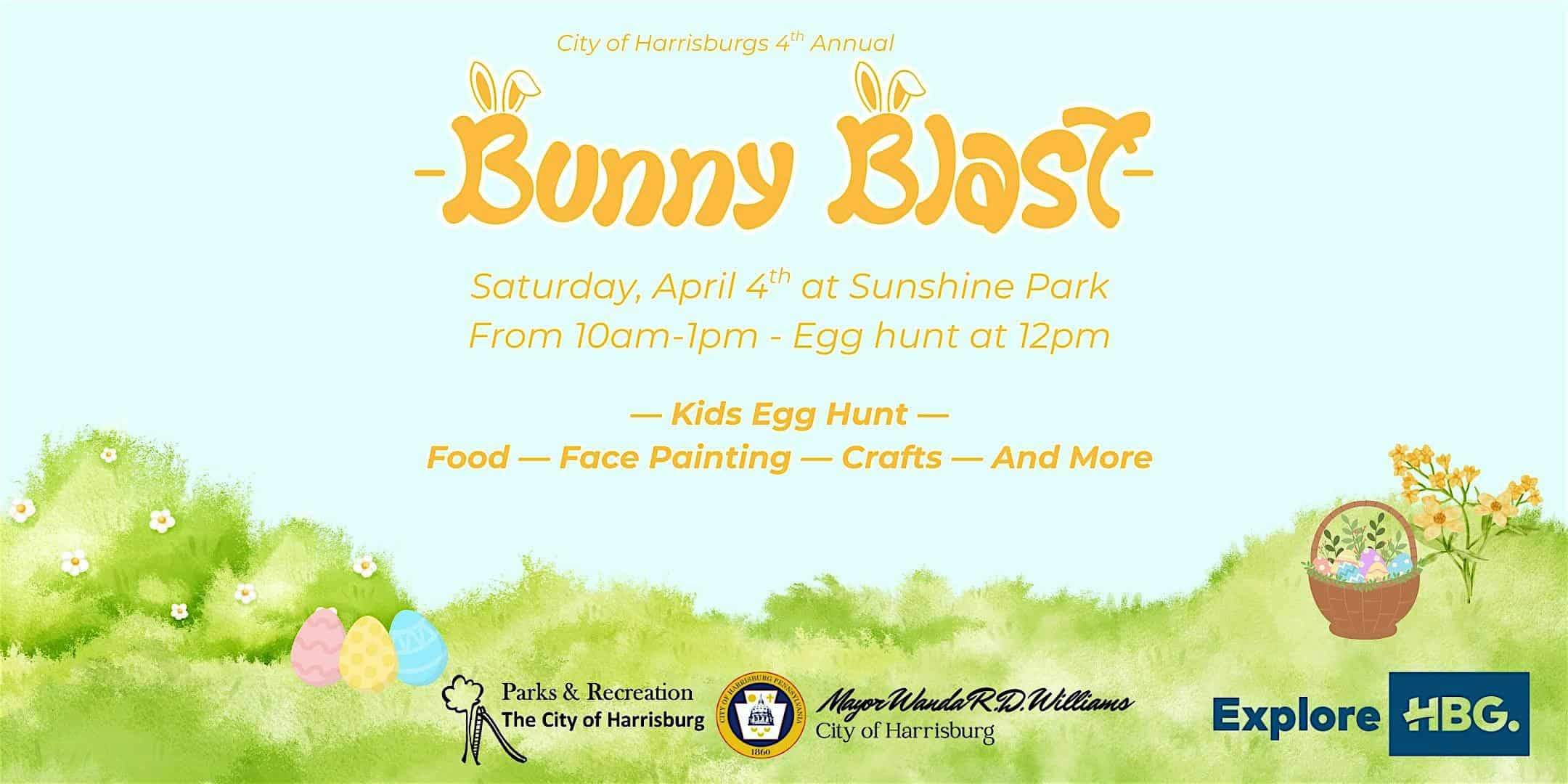 by admin14Feb Bunny Blast at Sunshine Park – Harrisburg, PA Bunny Blast at Sunshine Park – Harrisburg, PA 1 1 people viewed this event. Hop into fun at our 4th Annual Bunny Blast! Easter egg hunt, crafts, face painting & more at Sunshine Park, on Saturday April 4th 10am –1pm! Tickets-RSVP Link Date And Time Saturday, April 4th, 2026 02:00 PM (PST) Venue Sunshine Park Location 901 North 12th Street, Harrisburg, PA 17103 Event Types Party or Social GatheringSeasonal & Holiday Event Category Pennsylvania Share With Friends Facebook Twitter Linkedin Xing Pinterest Share This Post: