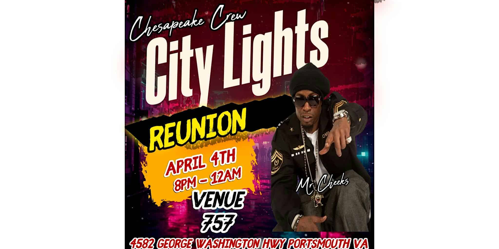 by admin23Feb City Light Reunion at Venue 757 – Portsmouth, VA City Light Reunion at Venue 757 – Portsmouth, VA 3 3 people viewed this event. City Light Reunion is the perfect vibe to catch up, share laughs, and shine together in person! Tickets-RSVP Link Date And Time Saturday, April 4th, 2026 08:00 PM (PST) Venue Venue 757 Location 4582 George Washington Highway, Portsmouth, VA 23702 Event Types MusicParty or Social Gathering Event Category NorfolkVirginia Share With Friends Facebook Twitter Linkedin Xing Pinterest Share This Post: