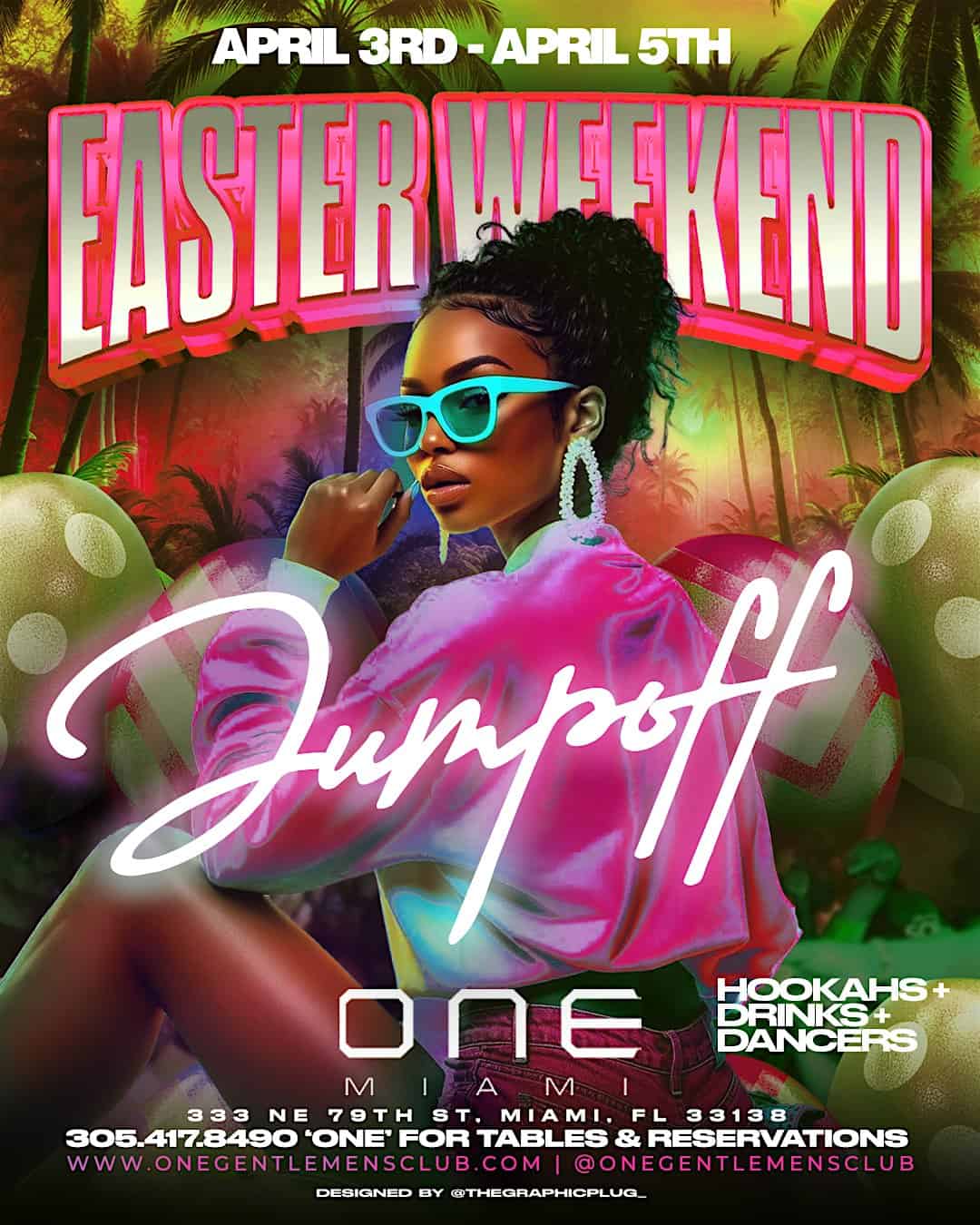 by admin14Feb EASTER WEEKEND @ ONE MIAMI at ONE Gentlemen’s Club – Miami, FL EASTER WEEKEND @ ONE MIAMI at ONE Gentlemen’s Club – Miami, FL 1 1 people viewed this event. Join us Easter Weekend at ONE Miami. DJs, dancers, hookah, premium drinks & nonstop vibes all Spring long. 21+ Tickets-RSVP Link Date And Time Saturday, April 4th, 2026 12:00 AM (PST) Venue ONE Gentlemen's Club Location 333 NE 79th ST, Miami, FL 33138 Event Types Party or Social GatheringSeasonal & Holiday Event Category FloridaMiami Share With Friends Facebook Twitter Linkedin Xing Pinterest Share This Post: