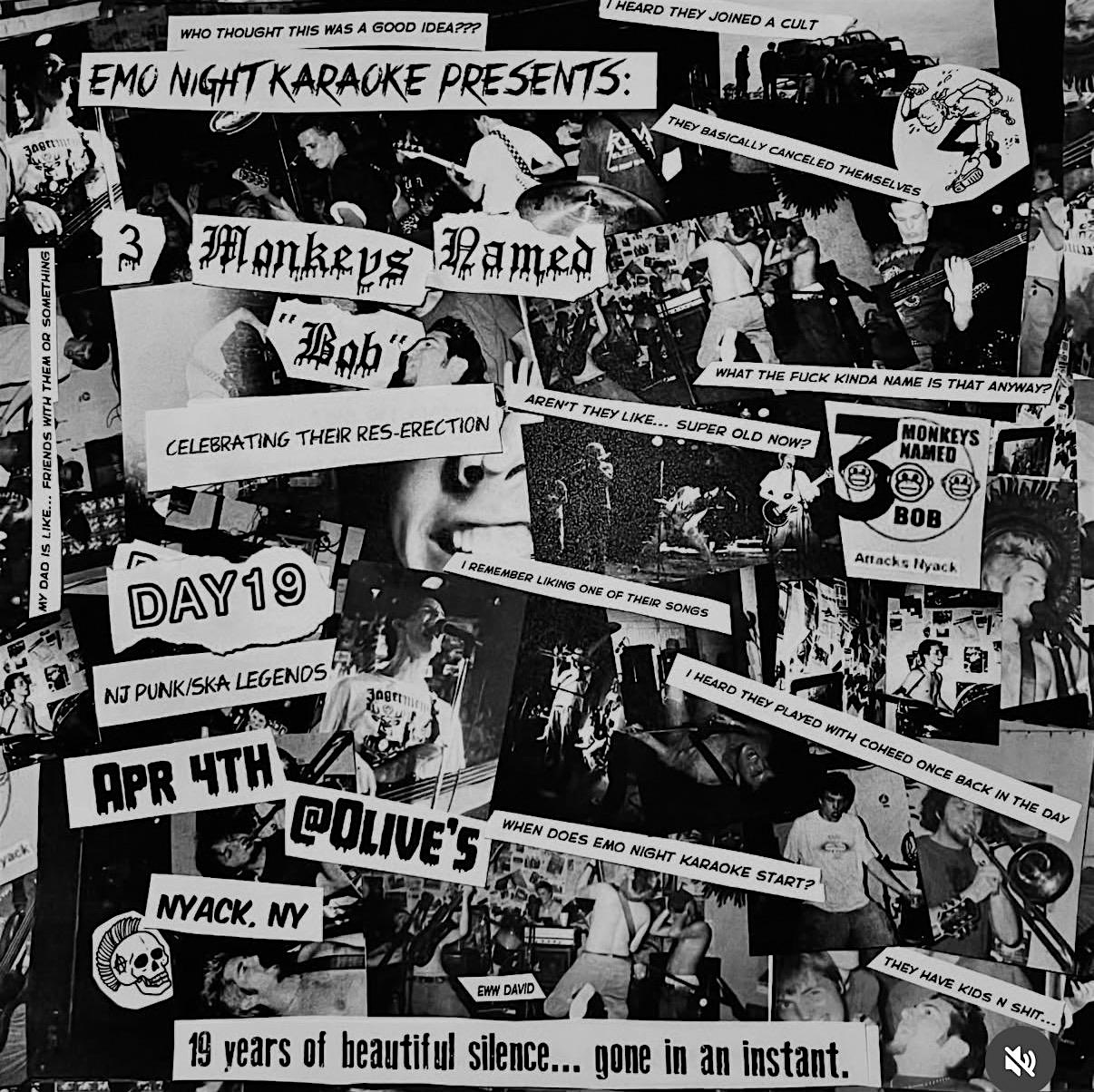 by admin13Feb emo night karaoke / 3 monkeys named bob/ day 19 on 4/4 @ olives at Olive’s – Nyack, NY emo night karaoke / 3 monkeys named bob/ day 19 on 4/4 @ olives at Olive’s – Nyack, NY 1 1 people viewed this event. *this will sell out* emo night karaoke / 3 monkeys named bob/ day 19 on 4/4 @ olives Tickets-RSVP Link Date And Time Saturday, April 4th, 2026 11:00 PM (PST) Venue Olive's Location 118 Main Street, Nyack, NY 10960 Event Types Party or Social GatheringPerforming & Visual Arts Event Category New York Share With Friends Facebook Twitter Linkedin Xing Pinterest Share This Post: