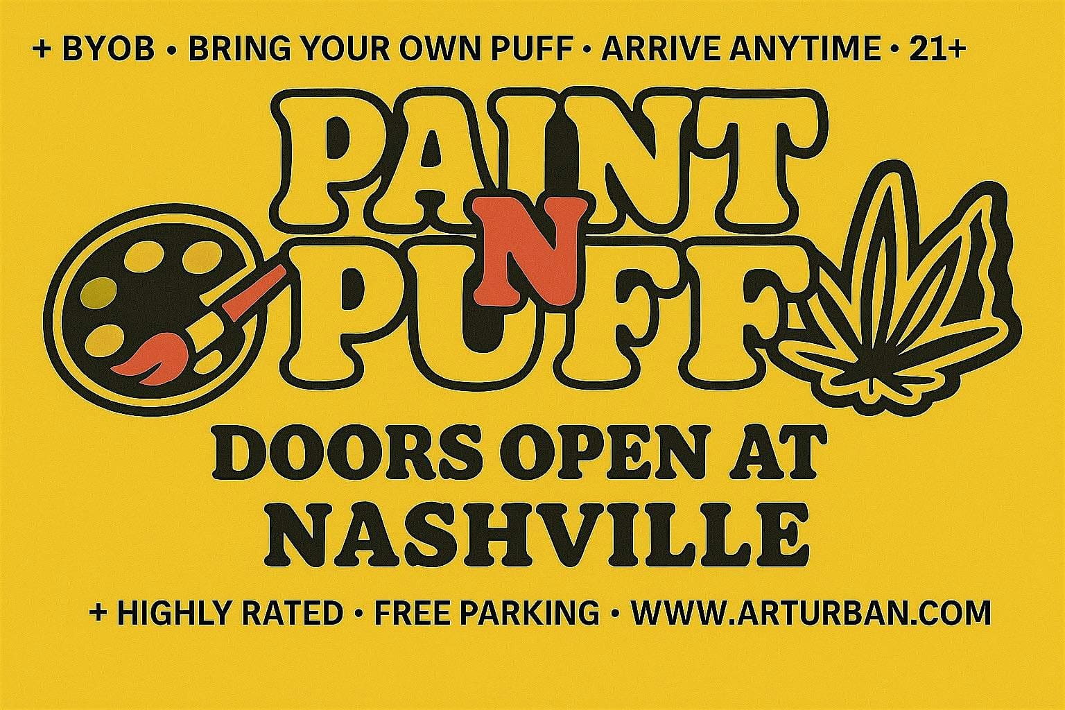 by admin23Feb Paint N Puff Nashville at Art Urban Nashville – NASHVILLE, TN Paint N Puff Nashville at Art Urban Nashville – NASHVILLE, TN 3 3 people viewed this event. Come see what all the hype is about! Not your ordinary paint and sip! Tickets-RSVP Link Date And Time Saturday, April 4th, 2026 10:00 PM (PST) Venue Art Urban Nashville Location 3101 Clarksville Pike, NASHVILLE, TN 37218 Event Types Party or Social Gathering Event Category NashvilleTennessee Share With Friends Facebook Twitter Linkedin Xing Pinterest Share This Post: