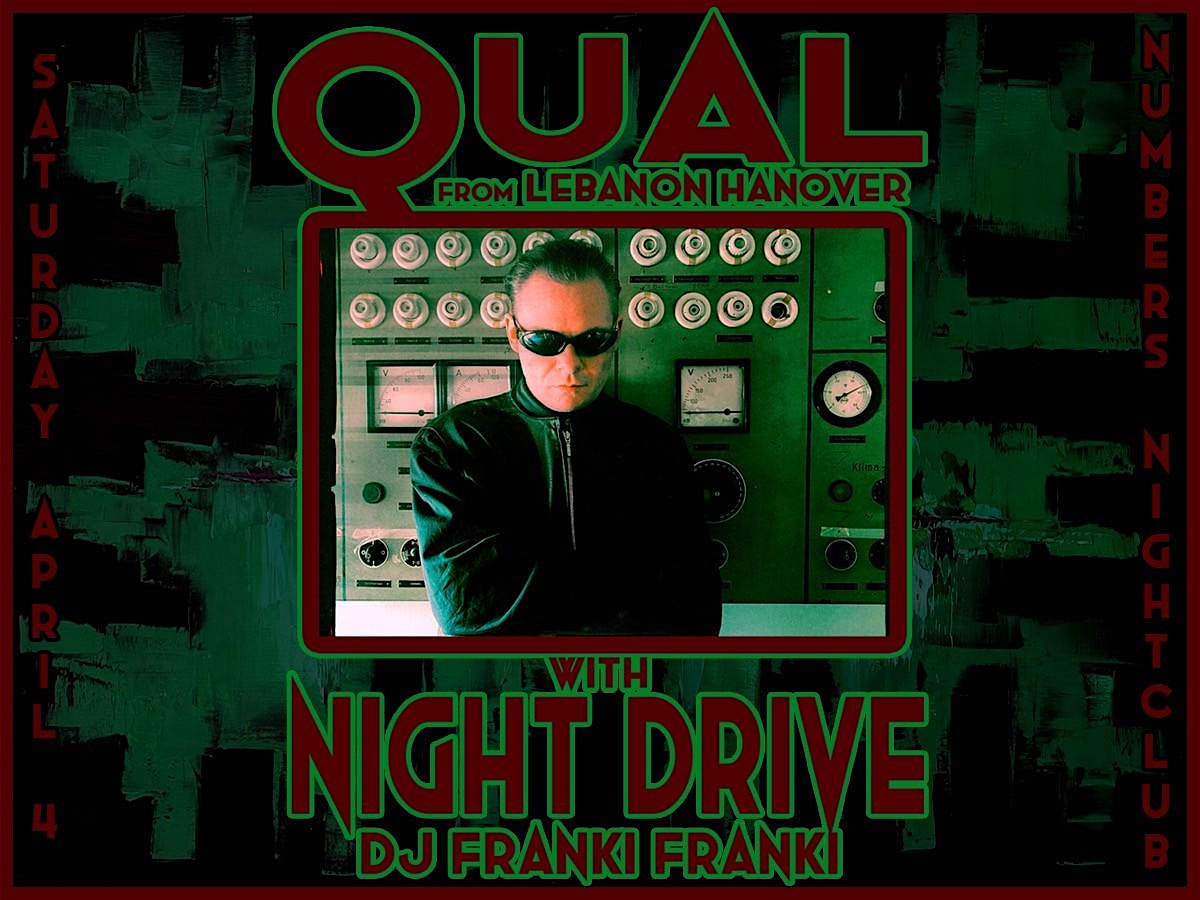 by admin24Feb Qual (Of Lebanon Hanover)& Night Drive Live at NUMBERS at Numbers Nightclub – Houston, TX Qual (Of Lebanon Hanover)& Night Drive Live at NUMBERS at Numbers Nightclub – Houston, TX 2 2 people viewed this event. Join us SATURDAY April 4th 2026 for a live show with Qual (of Lebanon Hanover) and Night Drive at NUMBERS Tickets-RSVP Link Date And Time Saturday, April 4th, 2026 09:00 PM (PST) Venue Numbers Nightclub Location 300 Westheimer, Houston, TX 77006 Event Types Concert or PerformanceMusic Event Category HoustonTexas Share With Friends Facebook Twitter Linkedin Xing Pinterest Share This Post: