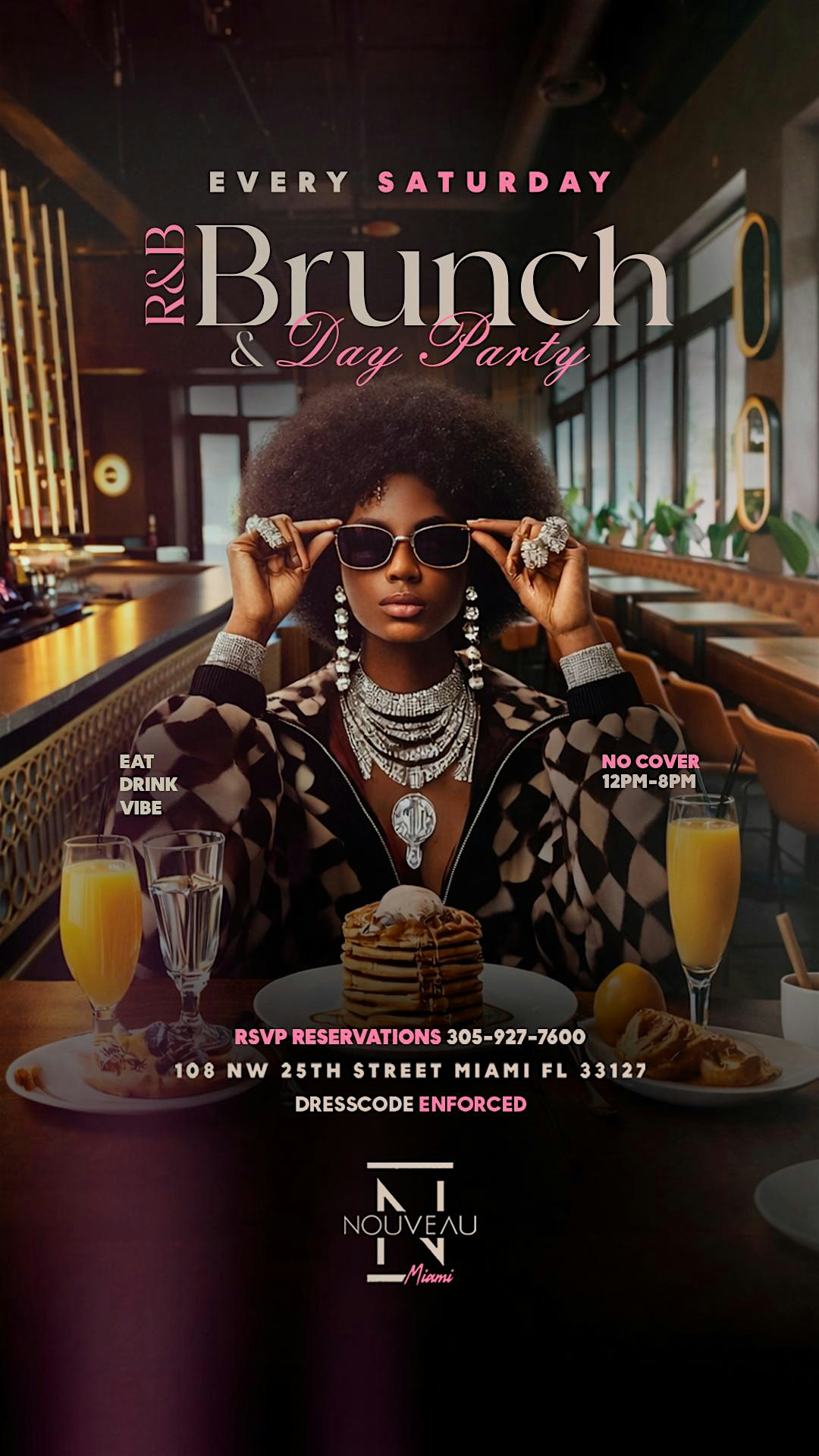 by admin27Feb R&B BRUNCH + DAY PARTY at Nouveau Miami – Miami, FL R&B BRUNCH + DAY PARTY at Nouveau Miami – Miami, FL 1 1 people viewed this event. Get ready to groove to the smooth sounds of R&B while feasting on delicious brunch bites at our day party – it’s going to be lit! Tickets-RSVP Link Date And Time Saturday, April 4th, 2026 12:00 PM (PST) Venue Nouveau Miami Location 108 Northwest 25th Street, Miami, FL 33127 Event Types Food & DrinkParty or Social Gathering Event Category FloridaMiami Share With Friends Facebook Twitter Linkedin Xing Pinterest Share This Post: