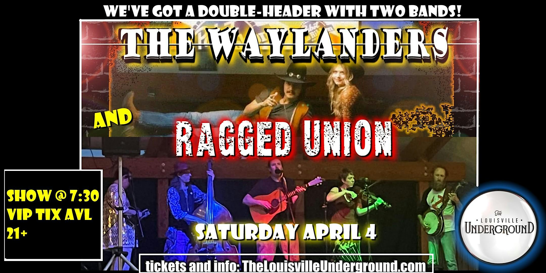 by admin24Feb The Waylanders & Ragged Union at The Louisville Underground – Louisville, CO The Waylanders & Ragged Union at The Louisville Underground – Louisville, CO 3 3 people viewed this event. A Double-Header! Two Bands, One Night: The Waylanders & Ragged Union Tickets-RSVP Link Date And Time Saturday, April 4th, 2026 07:00 PM (PST) Venue The Louisville Underground Location 640 Main Street, Louisville, CO 80027 Event Types Concert or PerformanceMusic Event Category Colorado Share With Friends Facebook Twitter Linkedin Xing Pinterest Share This Post: