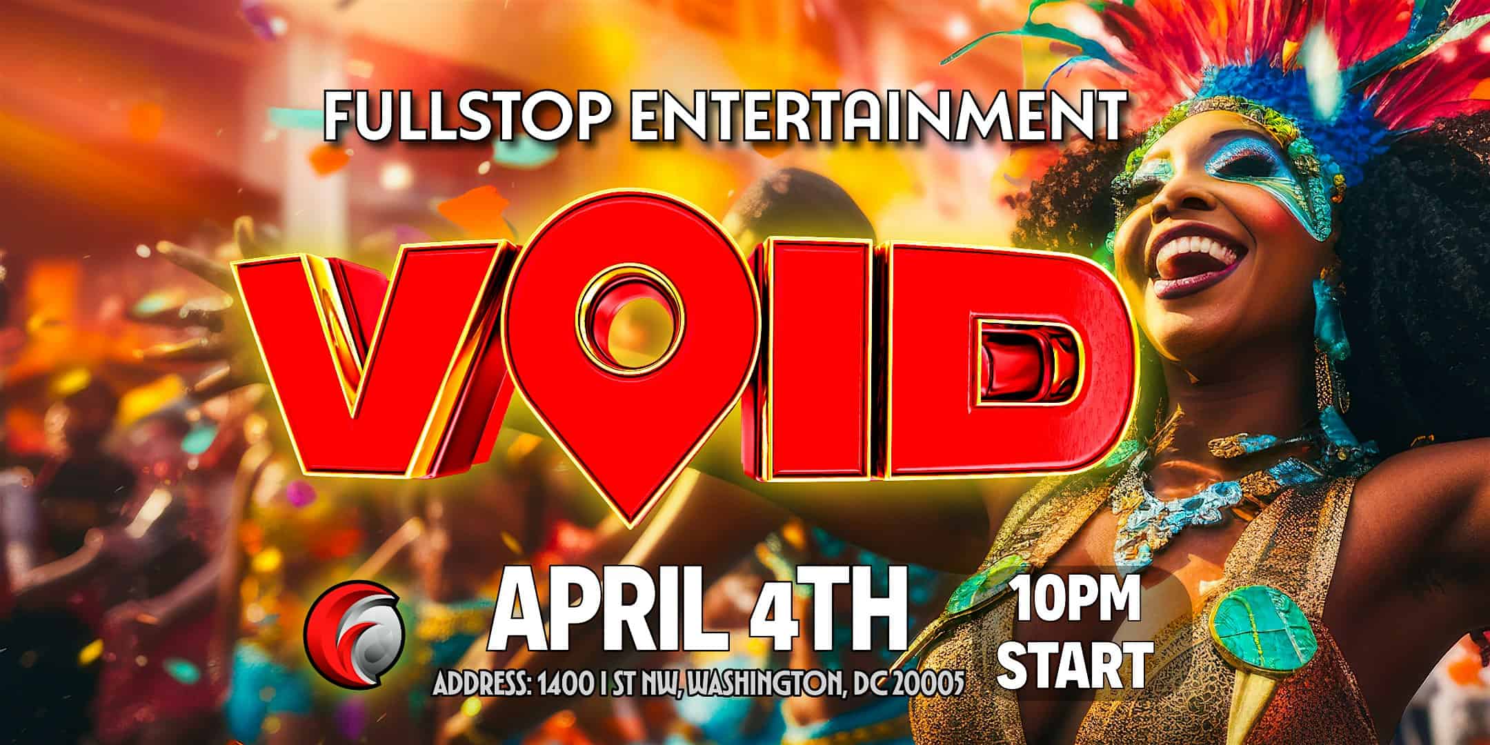 by admin23Feb VOID at 1400 I St NW – Washington, DC VOID at 1400 I St NW – Washington, DC 2 2 people viewed this event. Step into the VOID on April 4th — where FULLSTOP ENTERTAINMENT brings back all the caribbean vibez and energy you’ve been missing. Tickets-RSVP Link Date And Time Saturday, April 4th, 2026 10:00 PM (PST) Venue 1400 I St NW Location 1400 I Street Northwest, Washington, DC 20005 Event Types MusicParty or Social Gathering Event Category Washington DC Share With Friends Facebook Twitter Linkedin Xing Pinterest Share This Post: