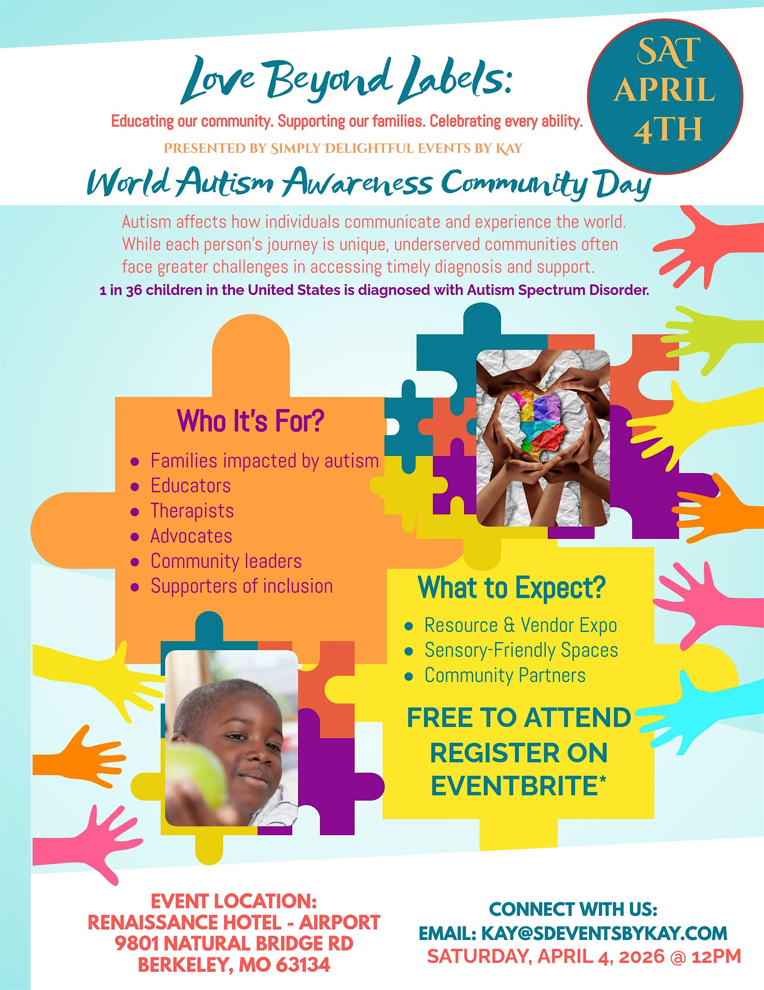 Join us for our Annual Autism Awareness Community Day, a free, family-centered event hosted by Love Beyond Labels. This impactful gathering is designed to connect individuals and families impacted by Autism Spectrum Disorder with trusted resources, local service providers, and community support.