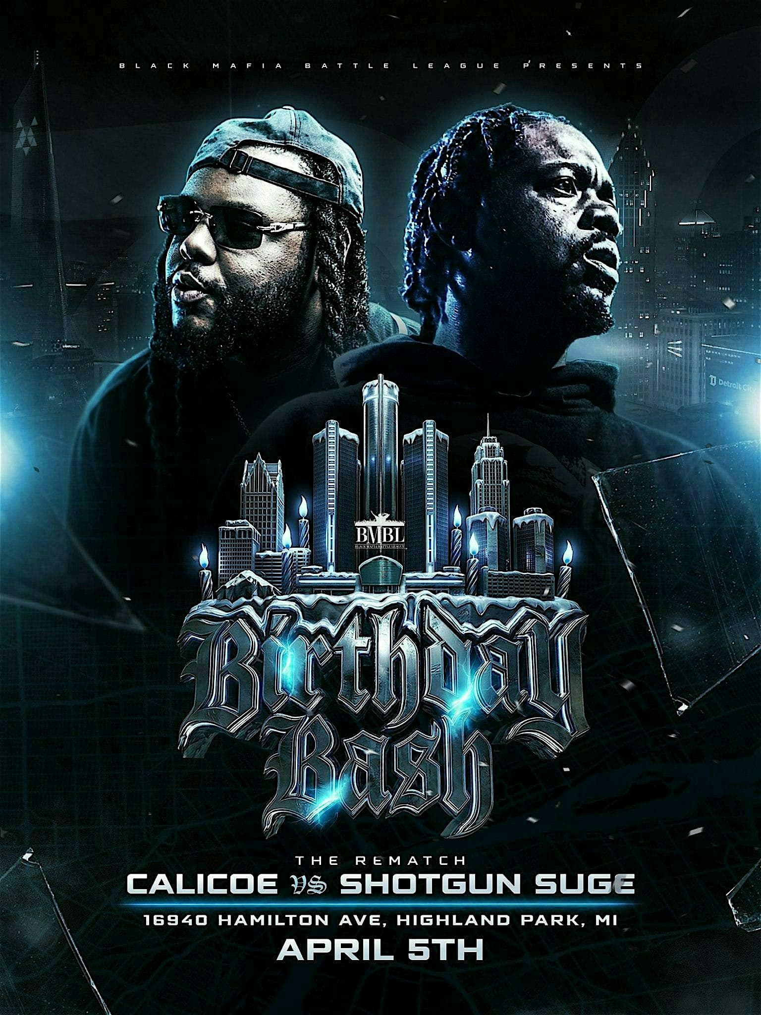 by admin14Feb Black mafia Battle League presents, BIRTHDAY BASH at The Vault – Highland park, MI Black mafia Battle League presents, BIRTHDAY BASH at The Vault – Highland park, MI 1 1 people viewed this event. This is a battle rap event, with the main event being, Shotgun Suge vs Detroits own, CALICOE! This is a highly anticipated REMATCH! Tickets-RSVP Link Date And Time Sunday, April 5th, 2026 08:00 PM (PST) Venue The Vault Location 16940 Hamilton Ave, Highland park, MI 48203 Event Types Concert or PerformancePerforming & Visual Arts Event Category Michigan Share With Friends Facebook Twitter Linkedin Xing Pinterest Share This Post: