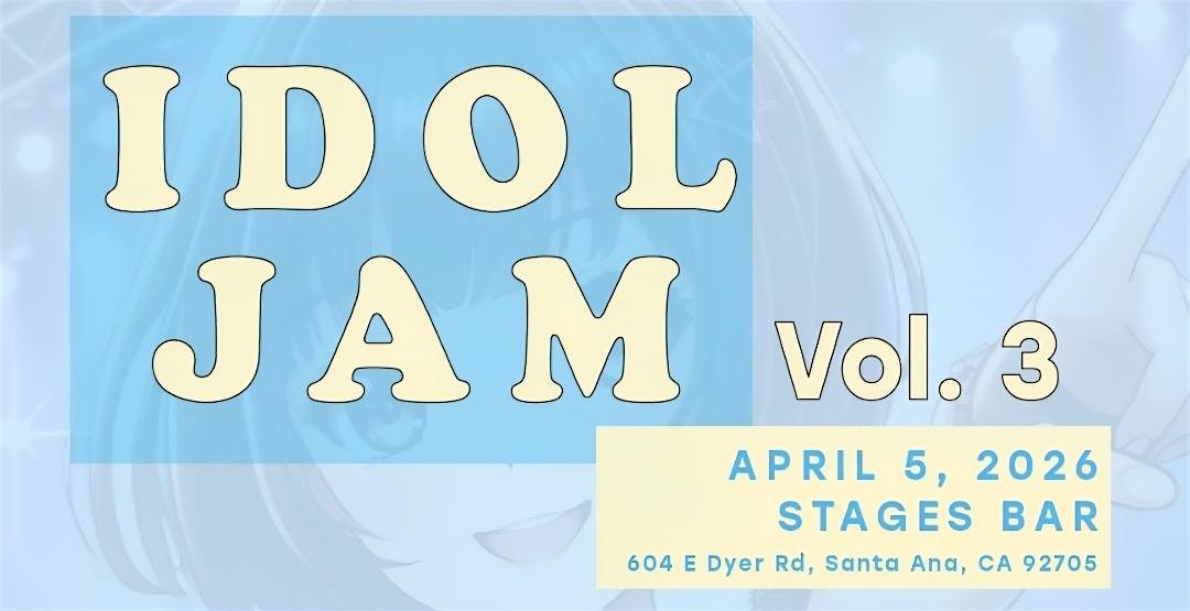 by admin13Feb Idol Jam Vol. 3 at Stages Bar – Santa Ana, CA Idol Jam Vol. 3 at Stages Bar – Santa Ana, CA 2 2 people viewed this event. Your favorite idol taiban Tickets-RSVP Link Date And Time Sunday, April 5th, 2026 09:00 PM (PST) Venue Stages Bar Location 604 East Dyer Road, Santa Ana, CA 92705 Event Types Concert or PerformanceMusic Event Category CaliforniaIrvine Share With Friends Facebook Twitter Linkedin Xing Pinterest Share This Post: