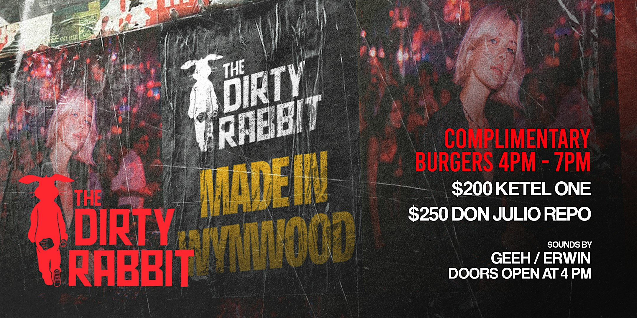 The Dirty Rabbit presents MADE IN WYNWOOD Sundays! Free BBQ + Cold Drinks. Party is from 4 PM – 7 PM every Sunday.