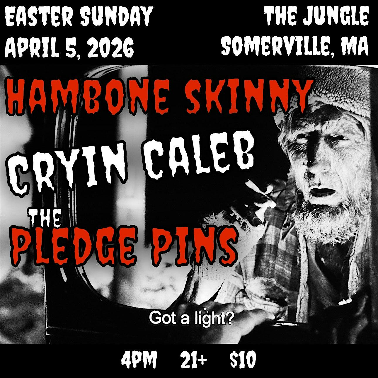 by admin13Feb Pledge Pins| Hambone Skinny | Cryin’ Caleb at The Jungle – Somerville, MA Pledge Pins| Hambone Skinny | Cryin’ Caleb at The Jungle – Somerville, MA 1 1 people viewed this event. Live Music at The Jungle Tickets-RSVP Link Date And Time Sunday, April 5th, 2026 09:00 PM (PST) Venue The Jungle Location 6 Sanborn Court, Somerville, MA 2143 Event Types Concert or PerformanceMusic Event Category Massachusetts Share With Friends Facebook Twitter Linkedin Xing Pinterest Share This Post: